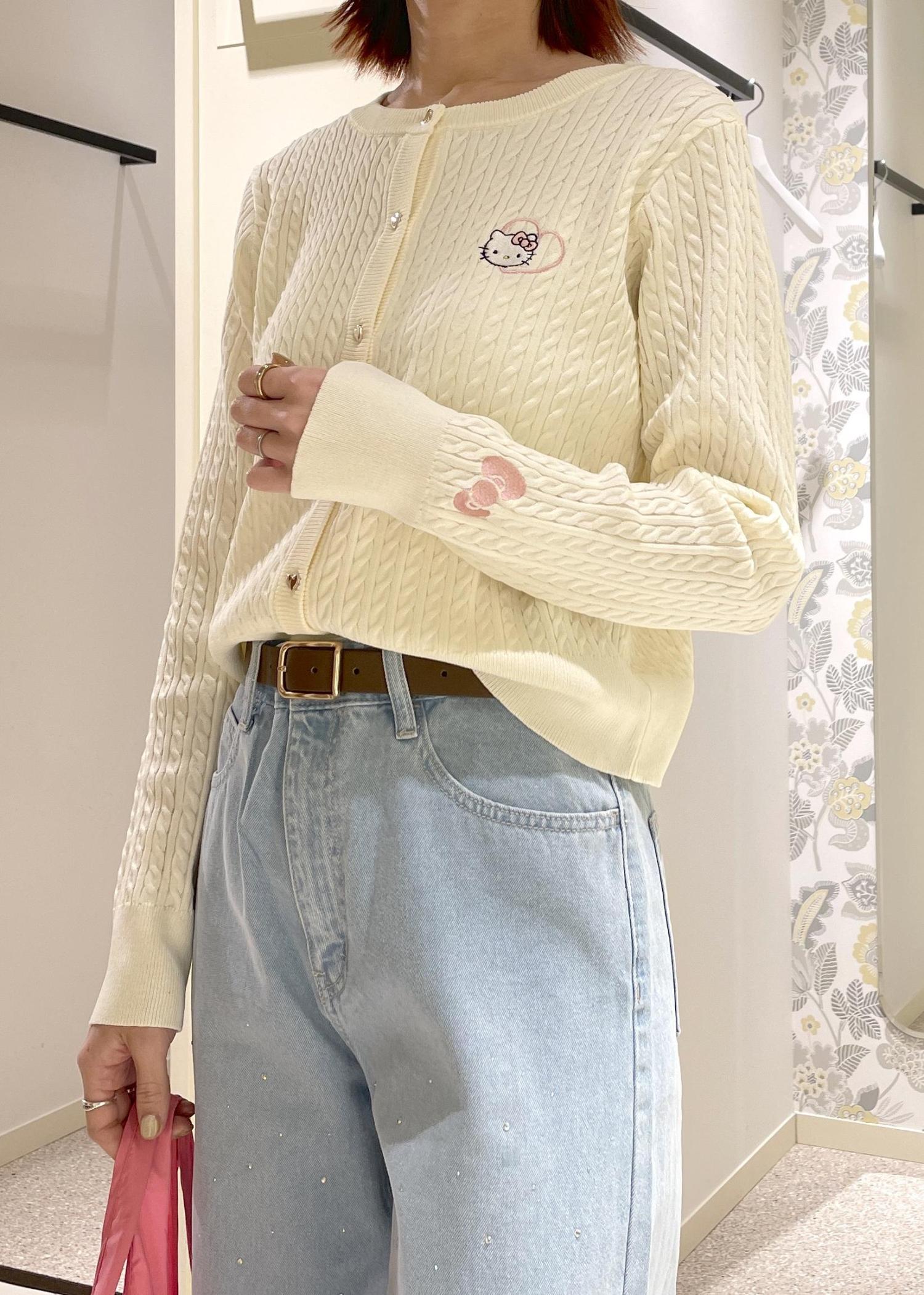【ROPE' PICNIC×ハローキティ】ワッペンケーブルニットカーディガン