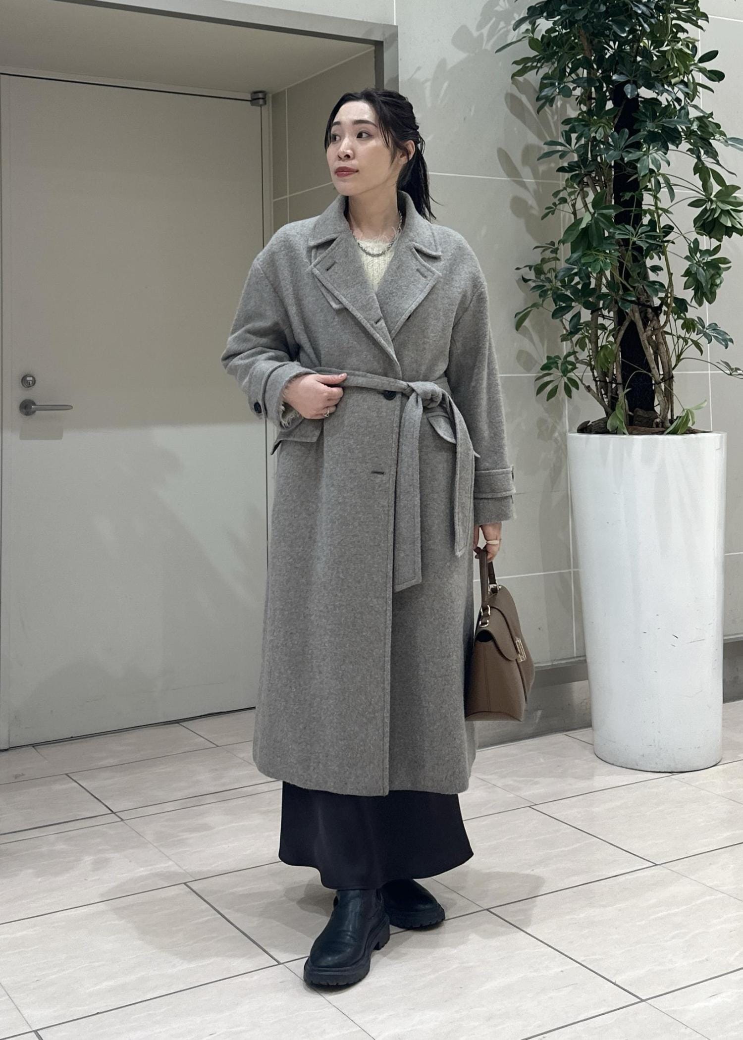 ロングコートでワントーンコーデ