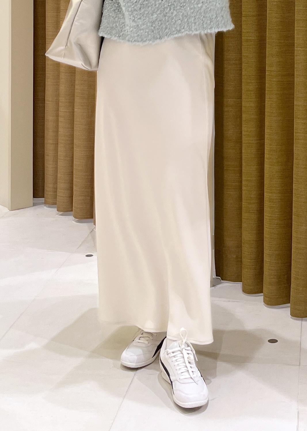 2BUY10%OFFROPÉ PICNIC細見えバイアスサテンスカート/イージーケアオフホワイト / F¥6,490レビュー滑らかな肌触りが気持ちいいつるっとした素材感。