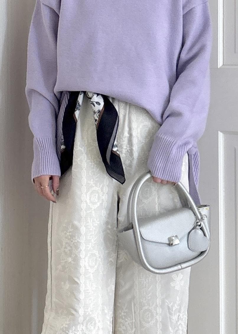 2BUY10%OFFROPÉ PICNIC【新色追加】着丈が選べるクルーネックサイドスリットニットプルオーバー/イージーケアラベンダー / MT¥2,969レビュー長い方を着用しました。