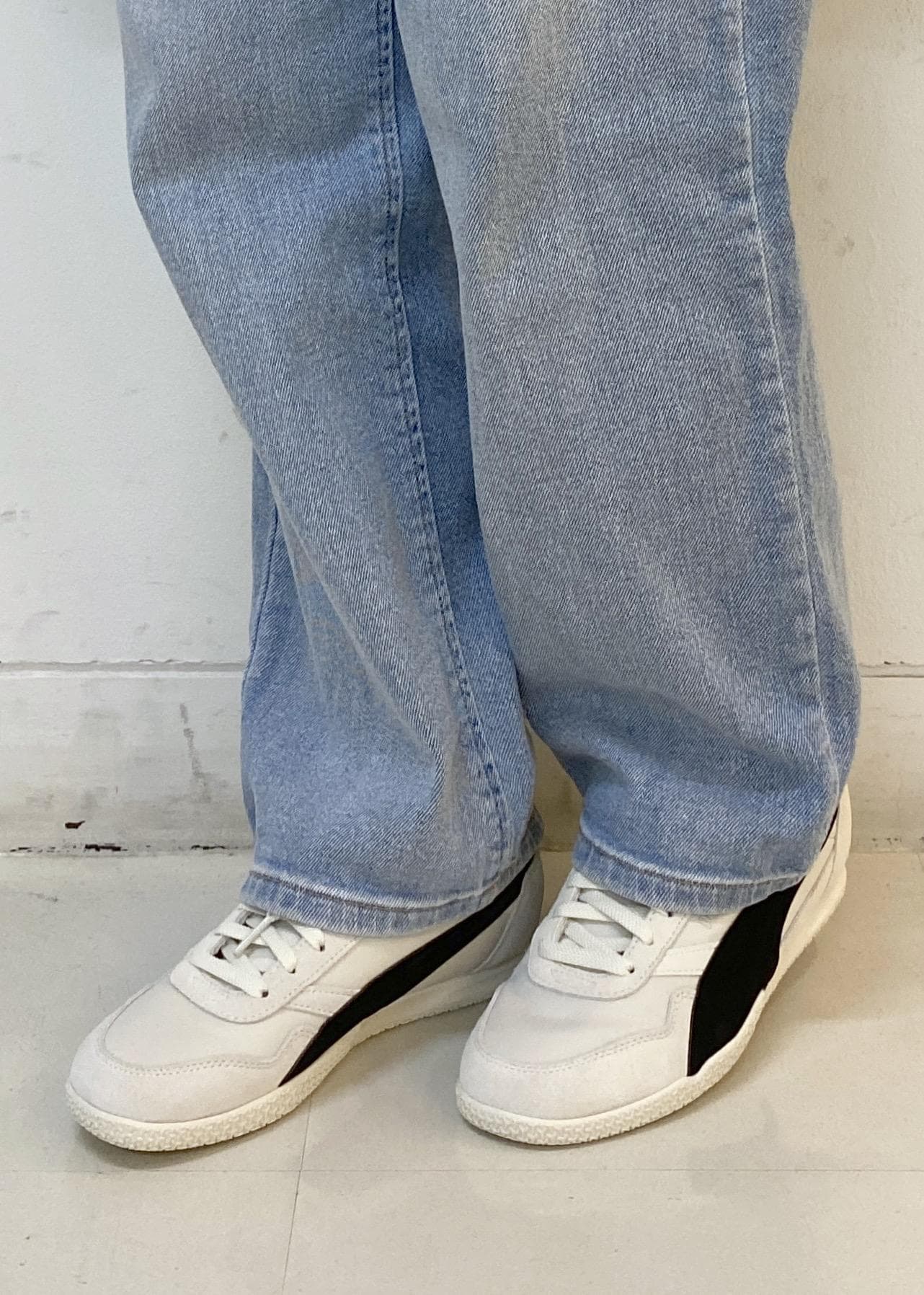 ハイウエストなので流行りのショート丈トップスとの相性抜群!!
