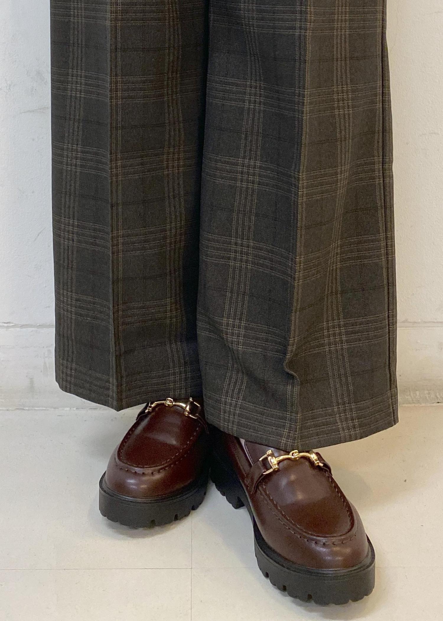 足元はボリュームのあるデザインのローファーでワンポイントに。