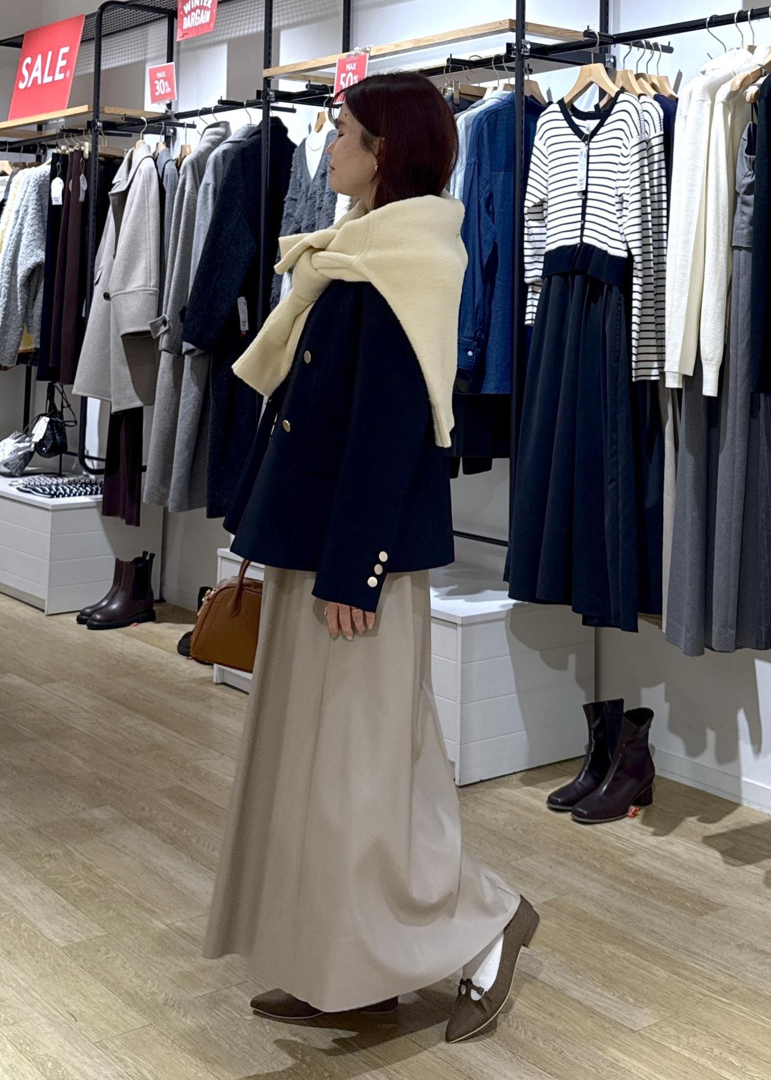 着丈がSとMで4cm変わるのですが、Sサイズだと脛が隠れる長さ、Mサイズだとくるぶし上ぐらいで、私はMサイズの長さの方がブーツで合わせたりしても好みの長さでした。 -