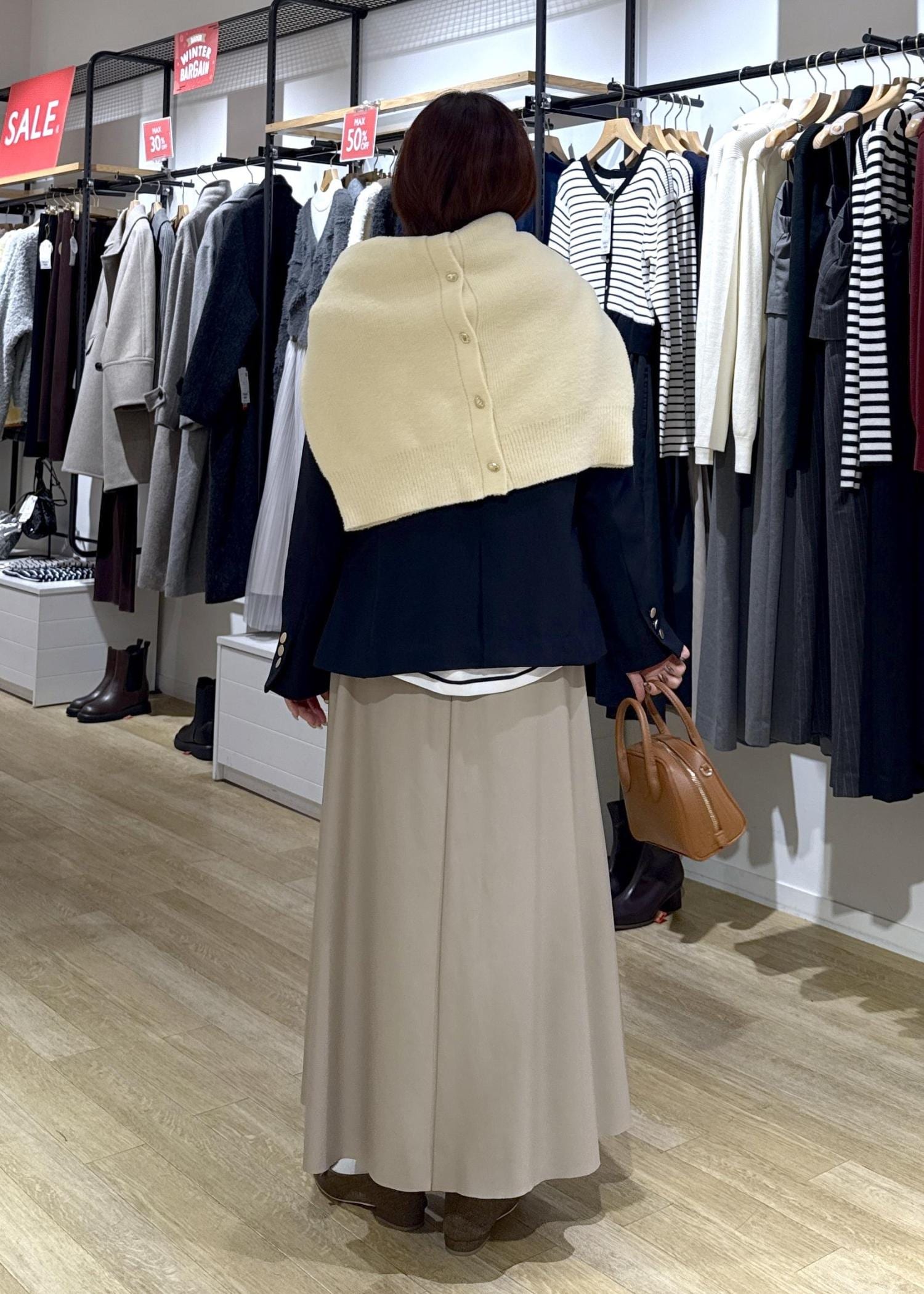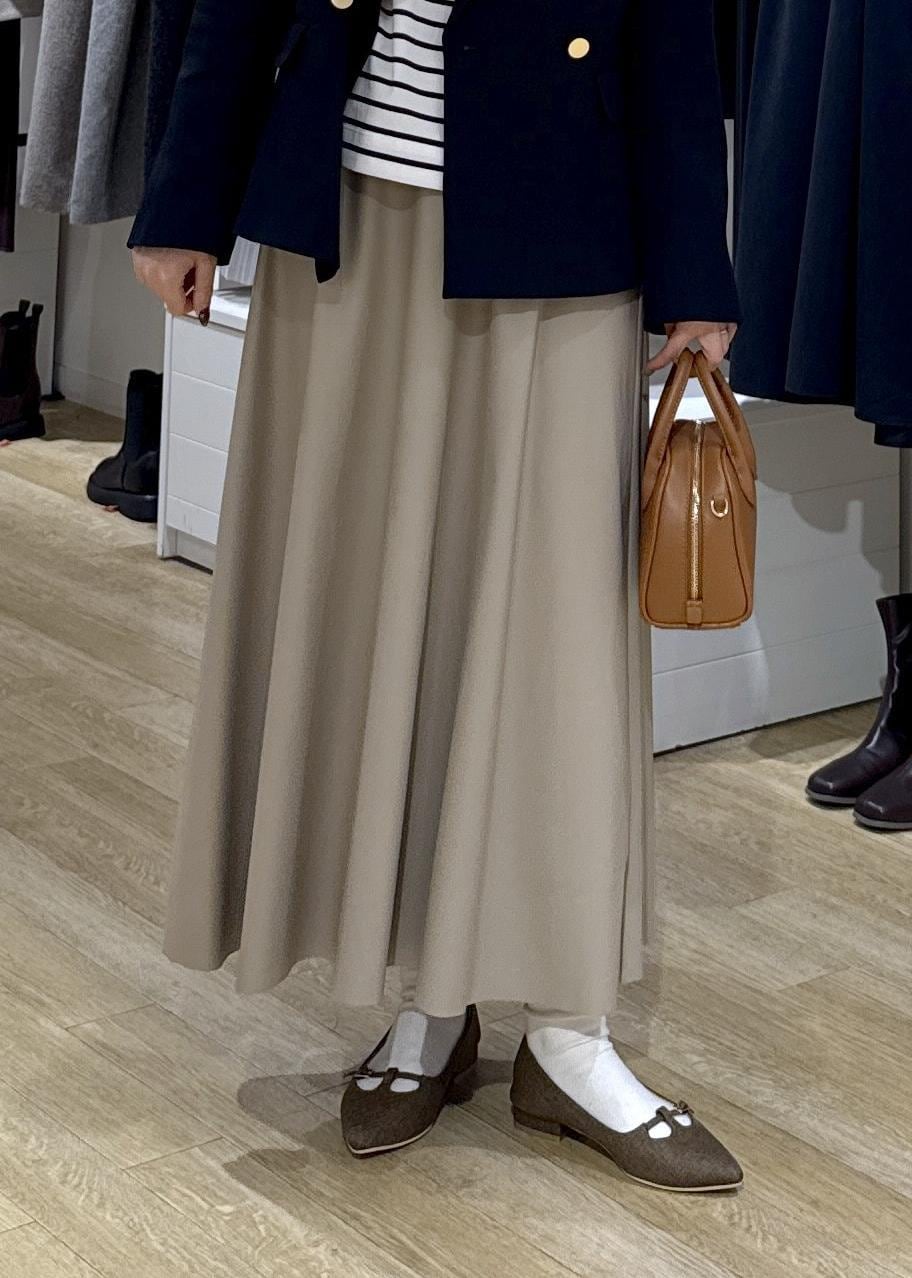 ROPÉ PICNICシンセティックレザーフレアロングスカートベージュ / M¥4,197レビューSサイズだとウエストジャストサイズで、Mサイズだとニットをインしても程よくゆとりありました。