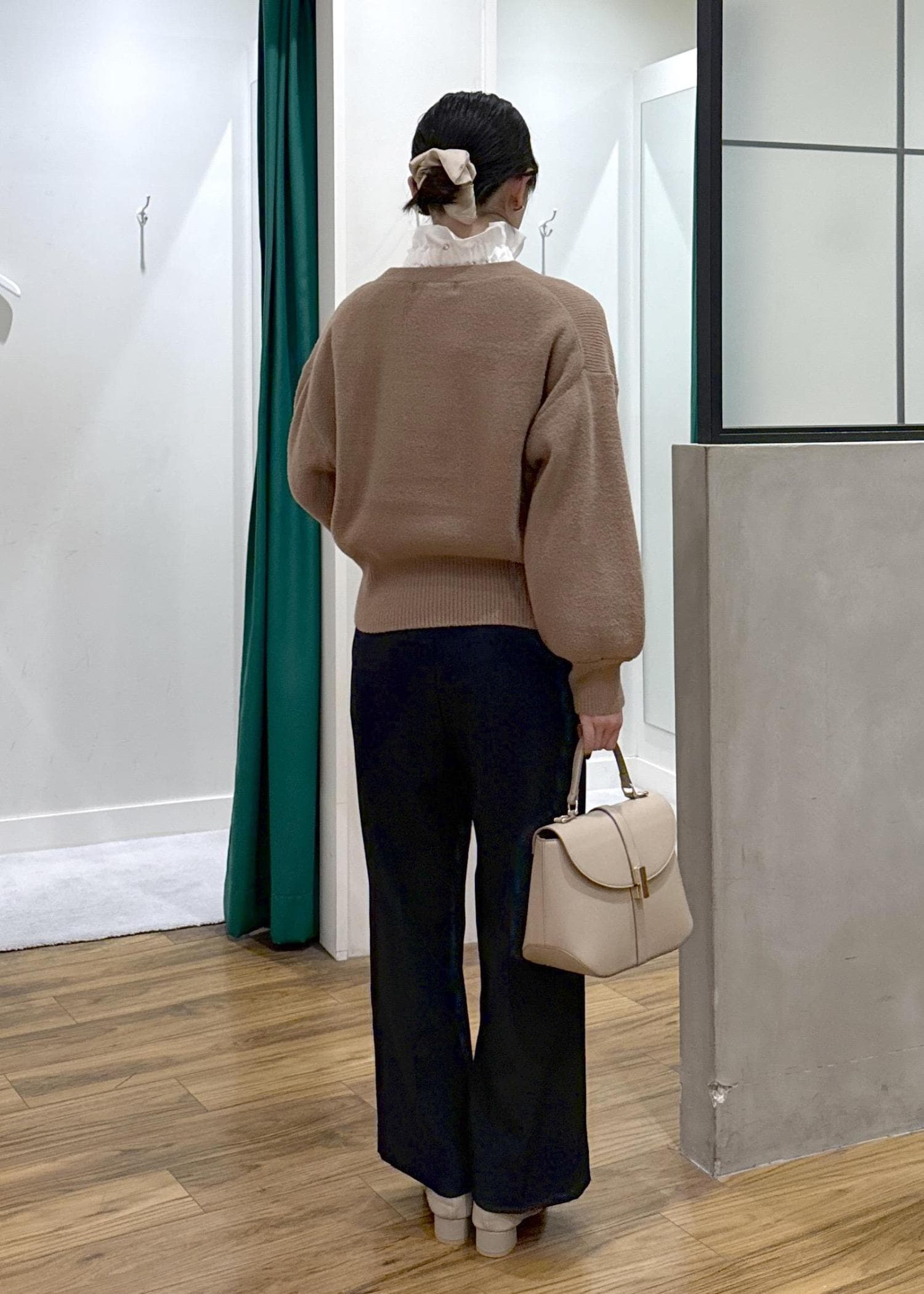 首元の可愛いリボンをアクセントにしたオフィスでも着れるコーデにしました。