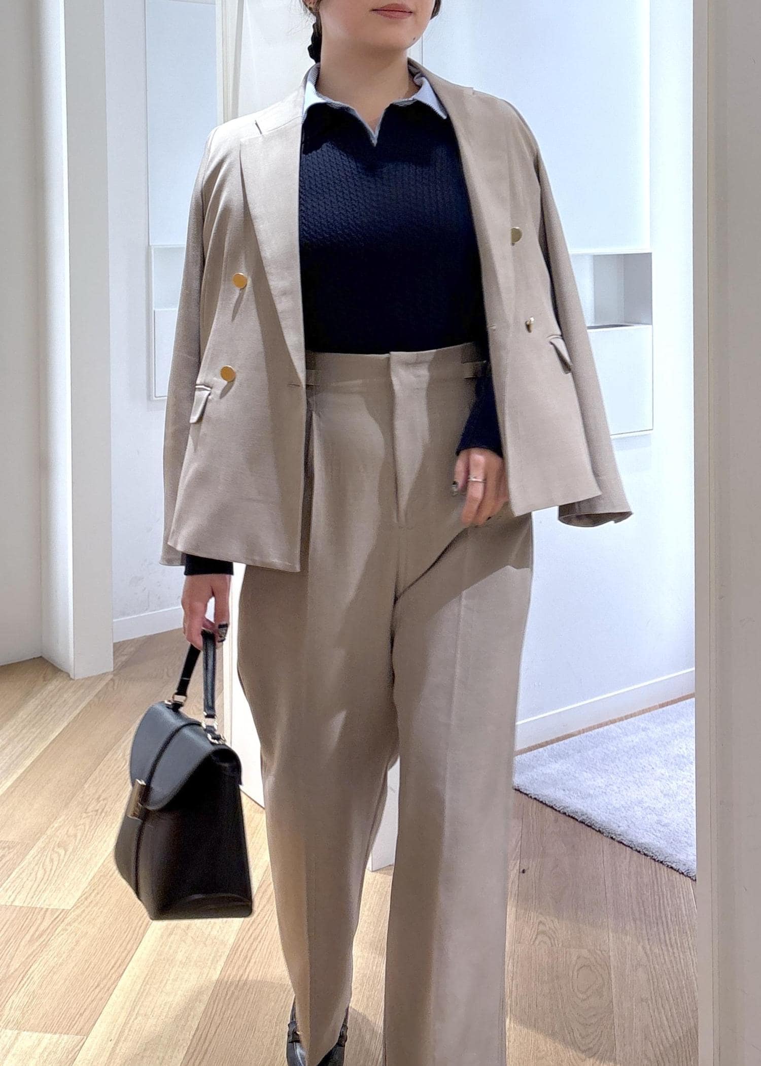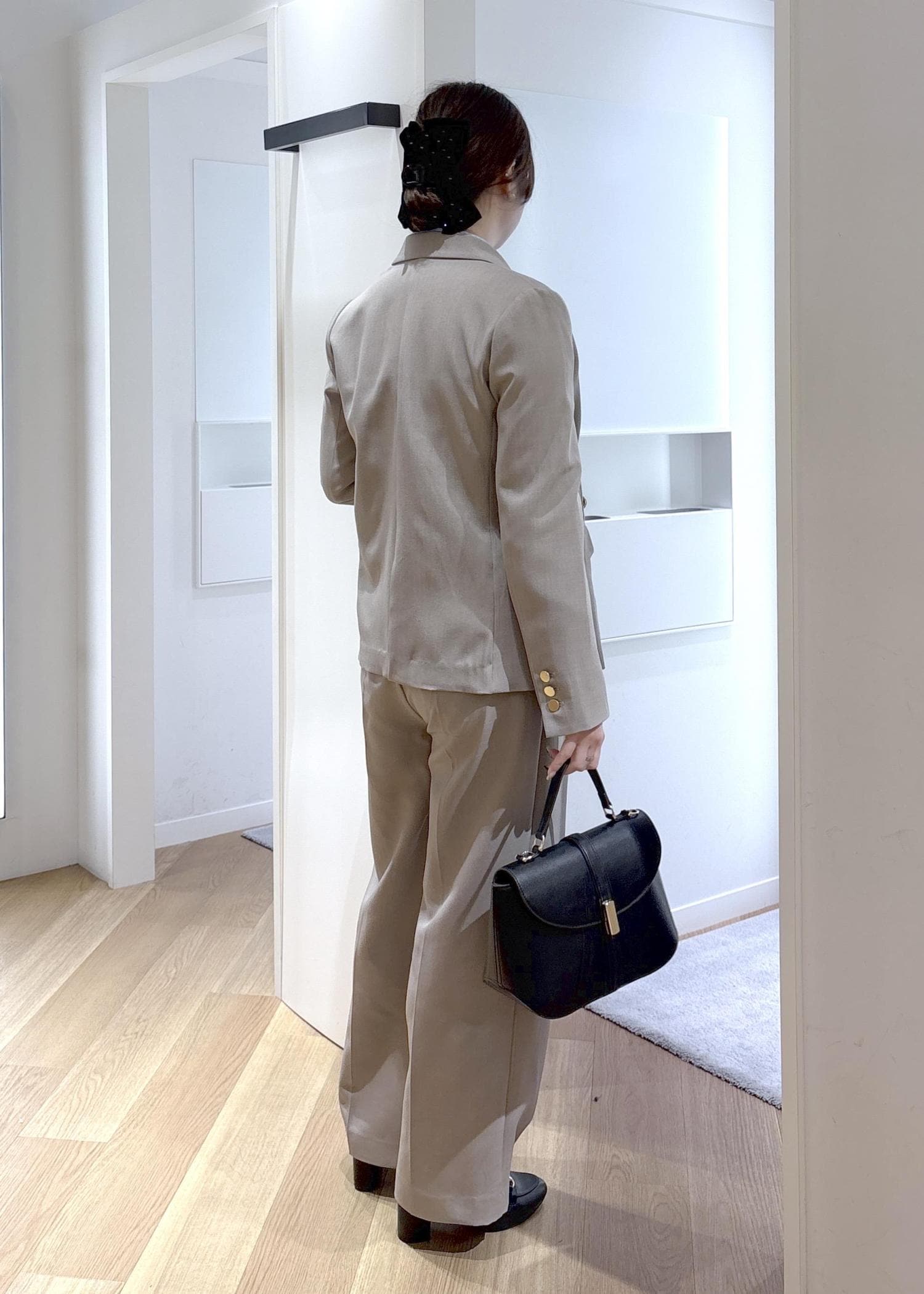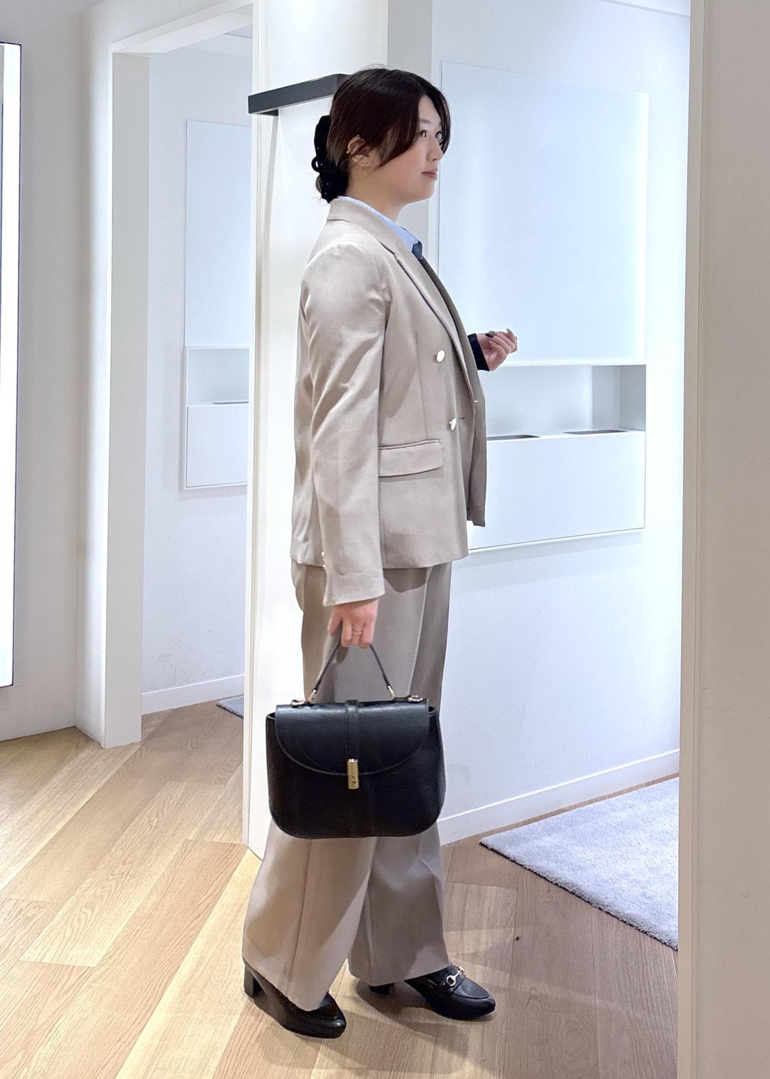 ベージュのカラーで春らしさをプラスしたセットアップコーデです。