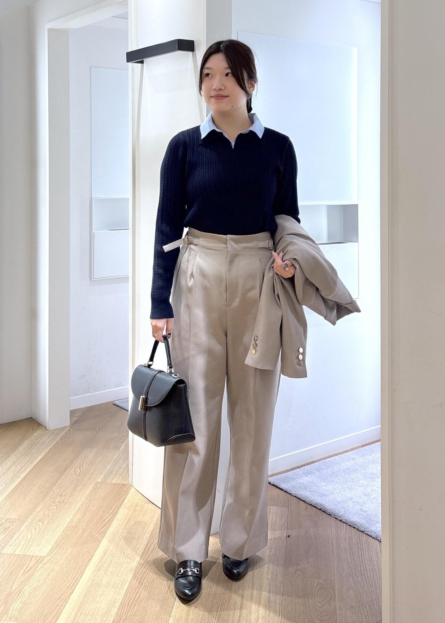 お仕事着も明るめのカラーだと気分も明るくなりますね!