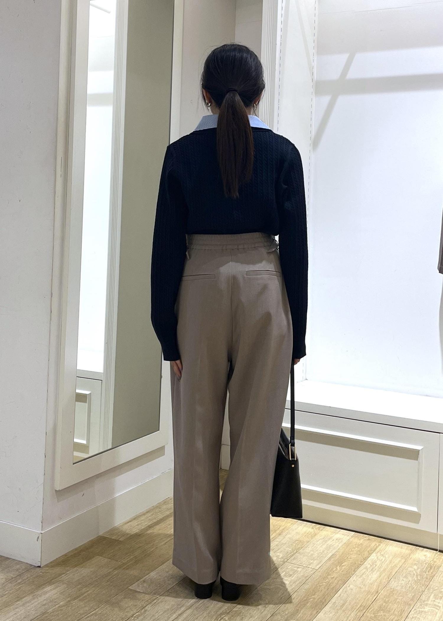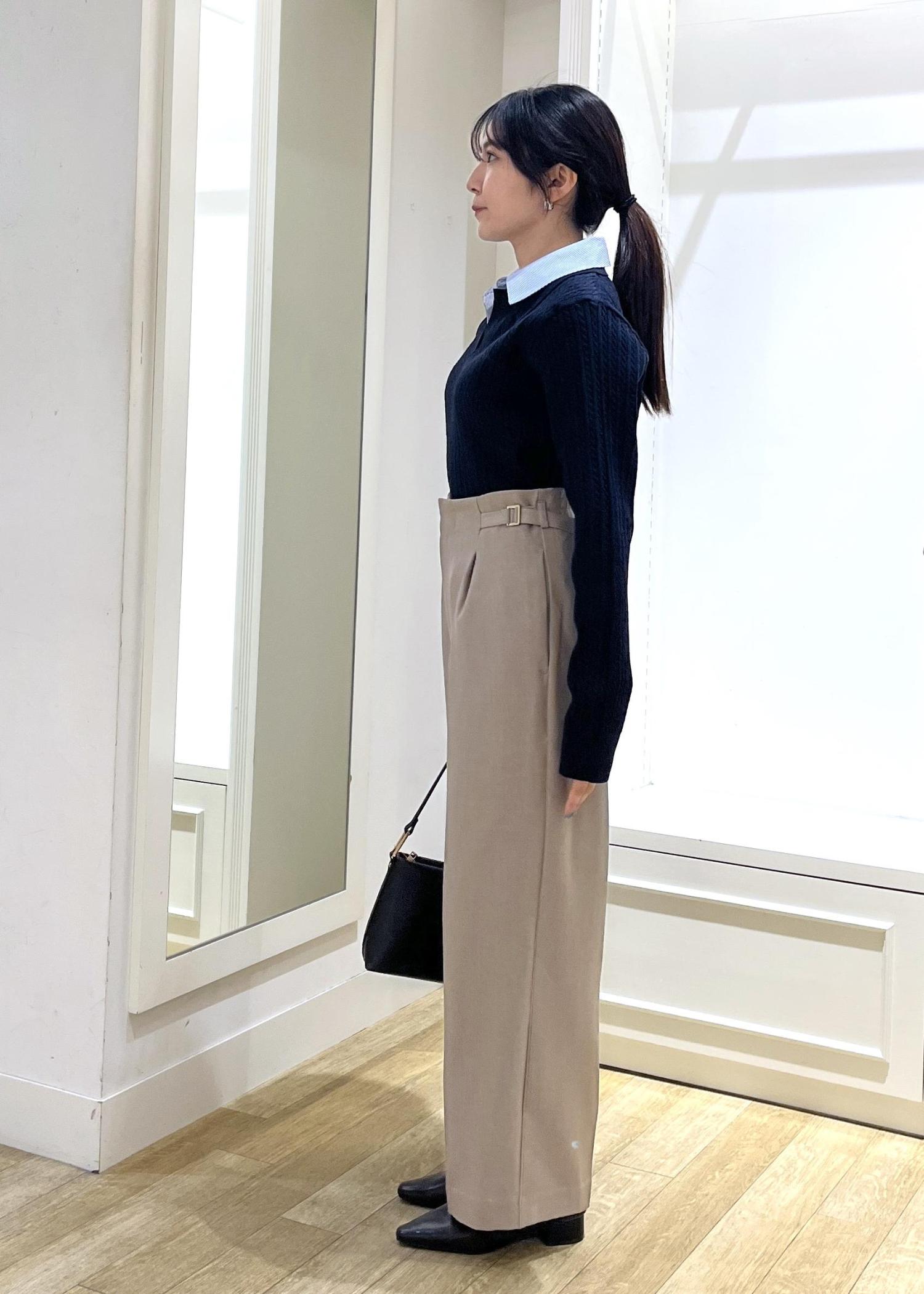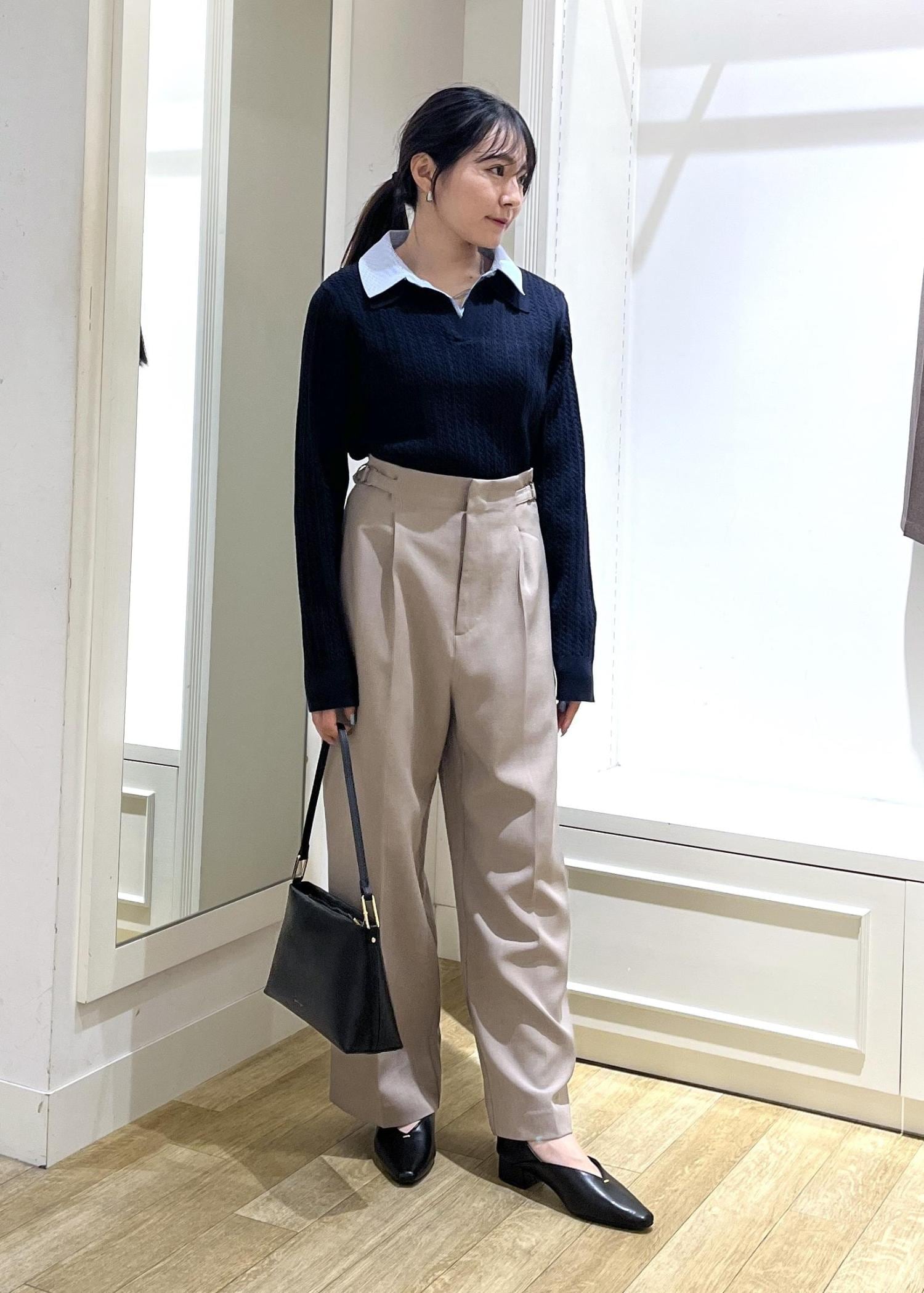 トップスは襟元にシャツがドッキングしてあるのでキレイめなパンツと合わせてオフィスカジュアルでも使っていただけそうなスタイリングにしました!