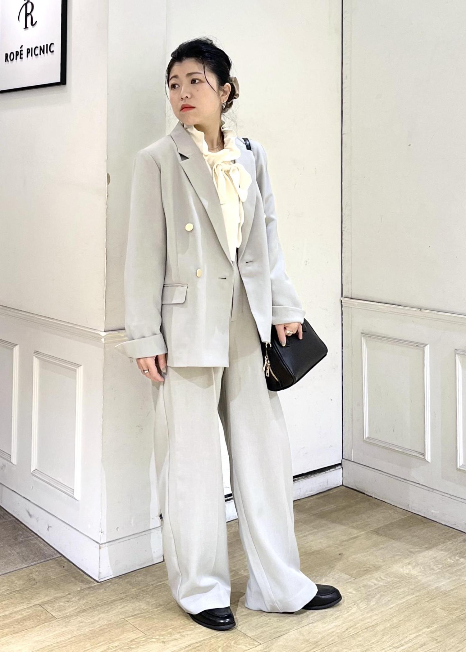 ROPÉ PICNICネックコンシャスデザインシャツ/イージーケアクリーム / F¥5,995レビューギャザーのフリルカラーとリボンタイで甘めですがフォーマルなスタイリングにも活躍してくれるブラウスです☺︎