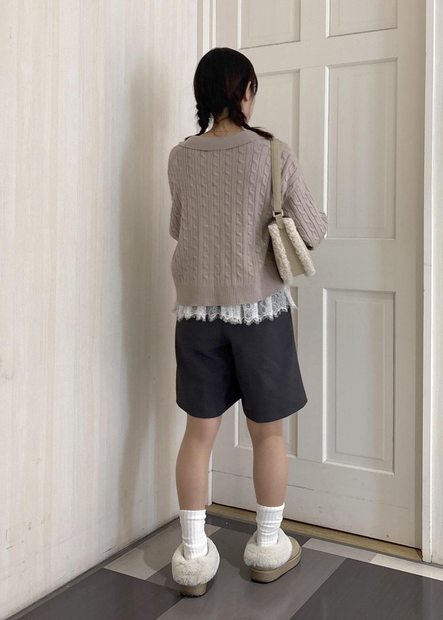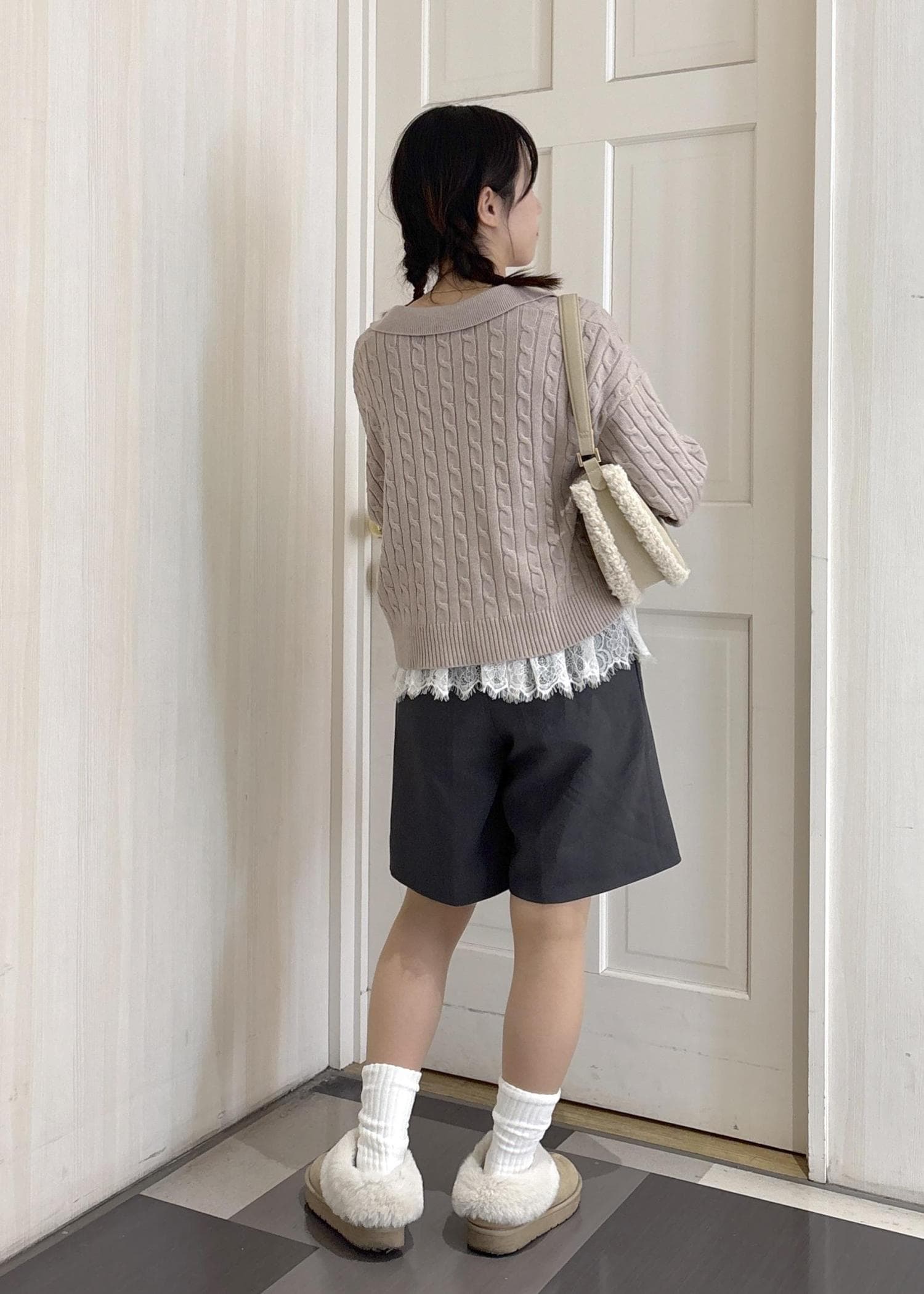 ROPÉ PICNIC【BEVERLYHILLS POLO CLUB・新色追加】ケーブル編みクロップドスキッパーニットベージュ / F¥5,995レビュー短丈ですが、身幅が広めでゆったりと着れるニットです。