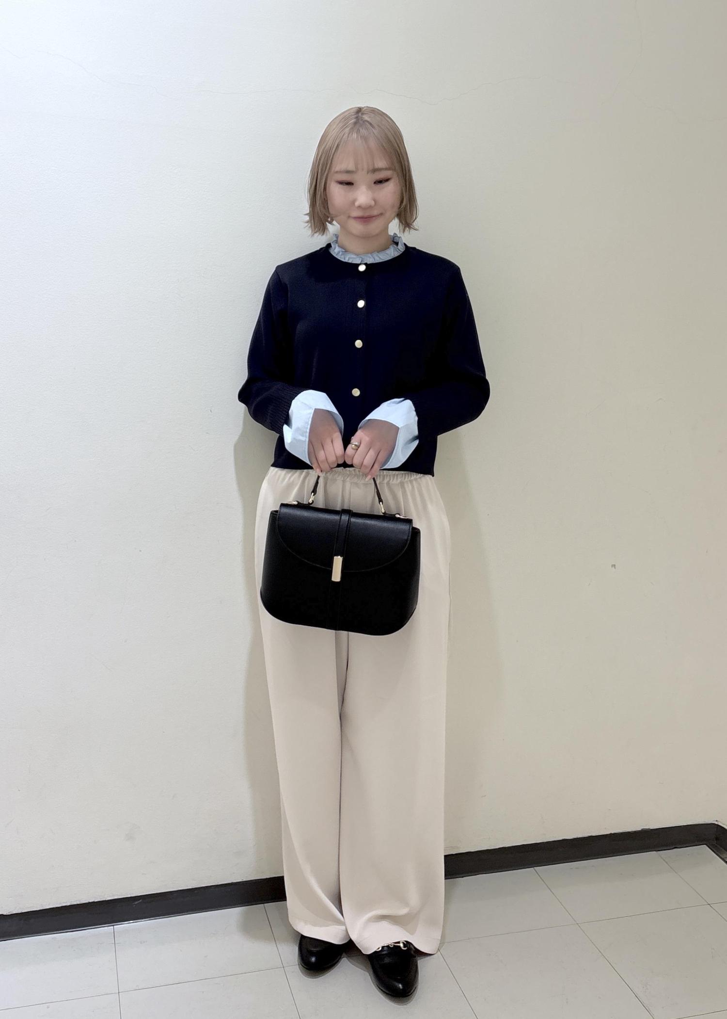 ベージュのパンツと合わせることで、柔らかい春らしい印象にしてみました。