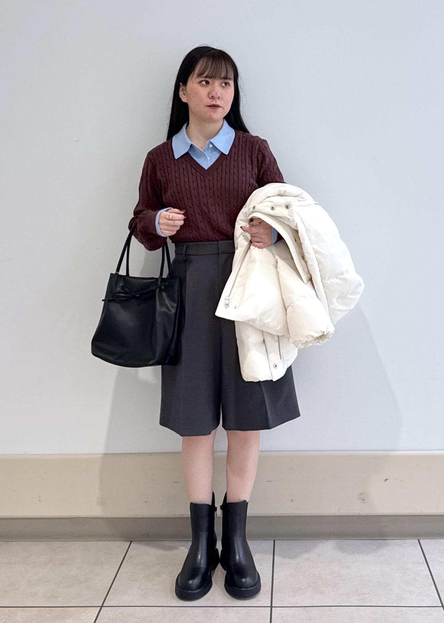 ニット×ハーフパンツのカジュアルコーデ