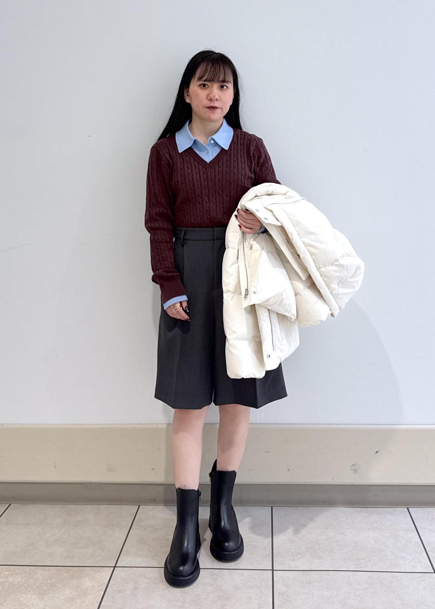 レイヤードニットとハーフパンツを合わせて、シンプルカジュアルコーデを組みました!