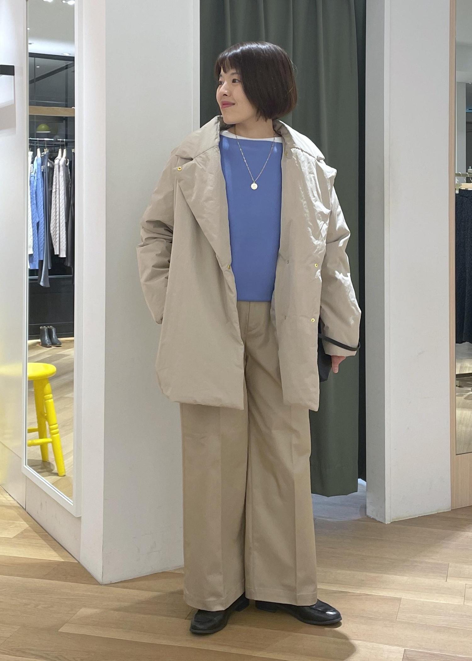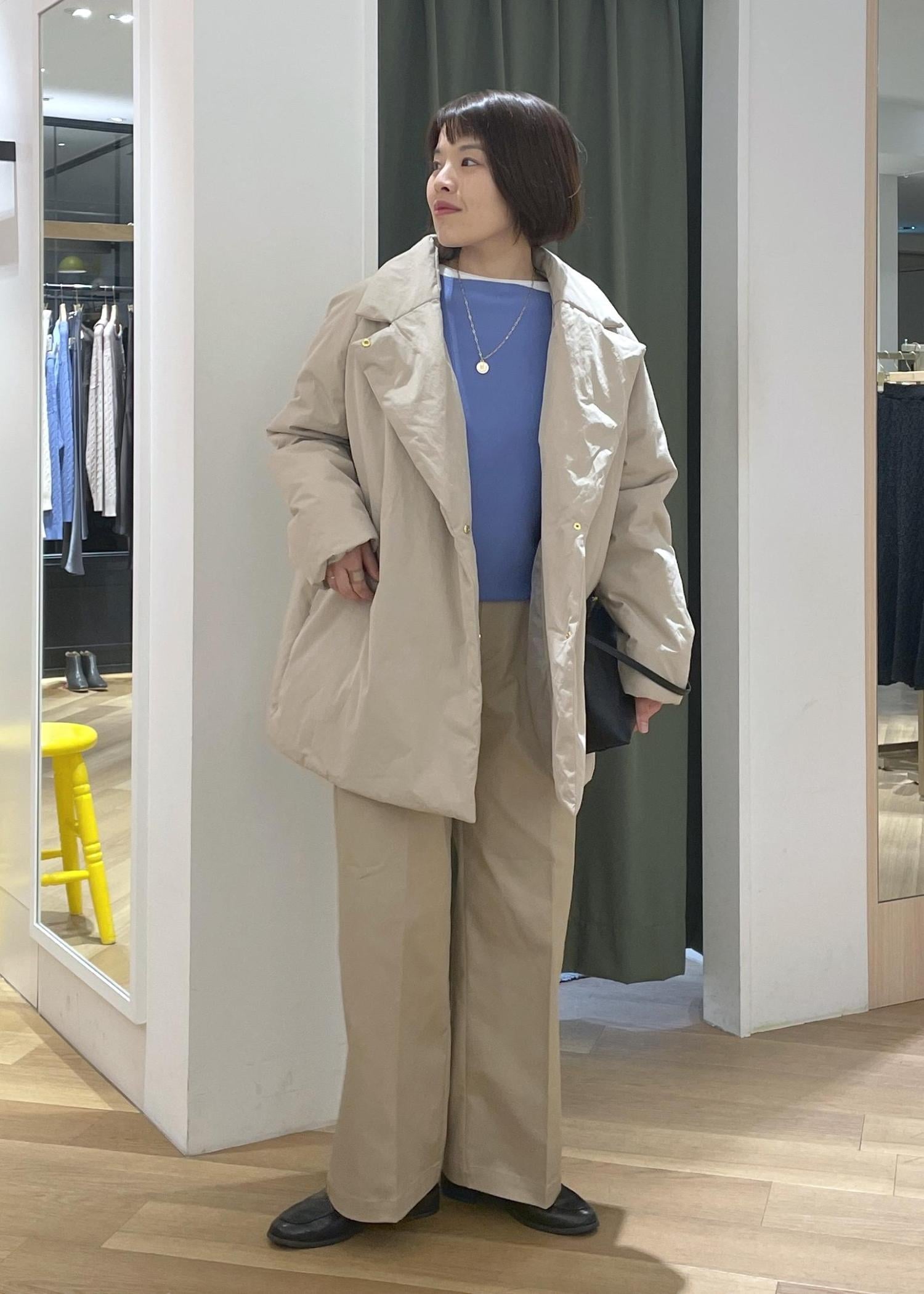 温かみのある中綿アウターですが、春っぽいカラー合わせでまとめてあげれば長いシーズンでお召し頂けます◎