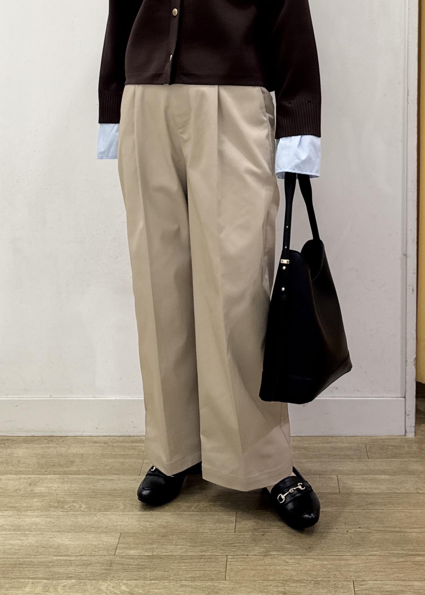 ハリ感のある素材感で、脚のラインも拾いにくいワイドシルエット! -
