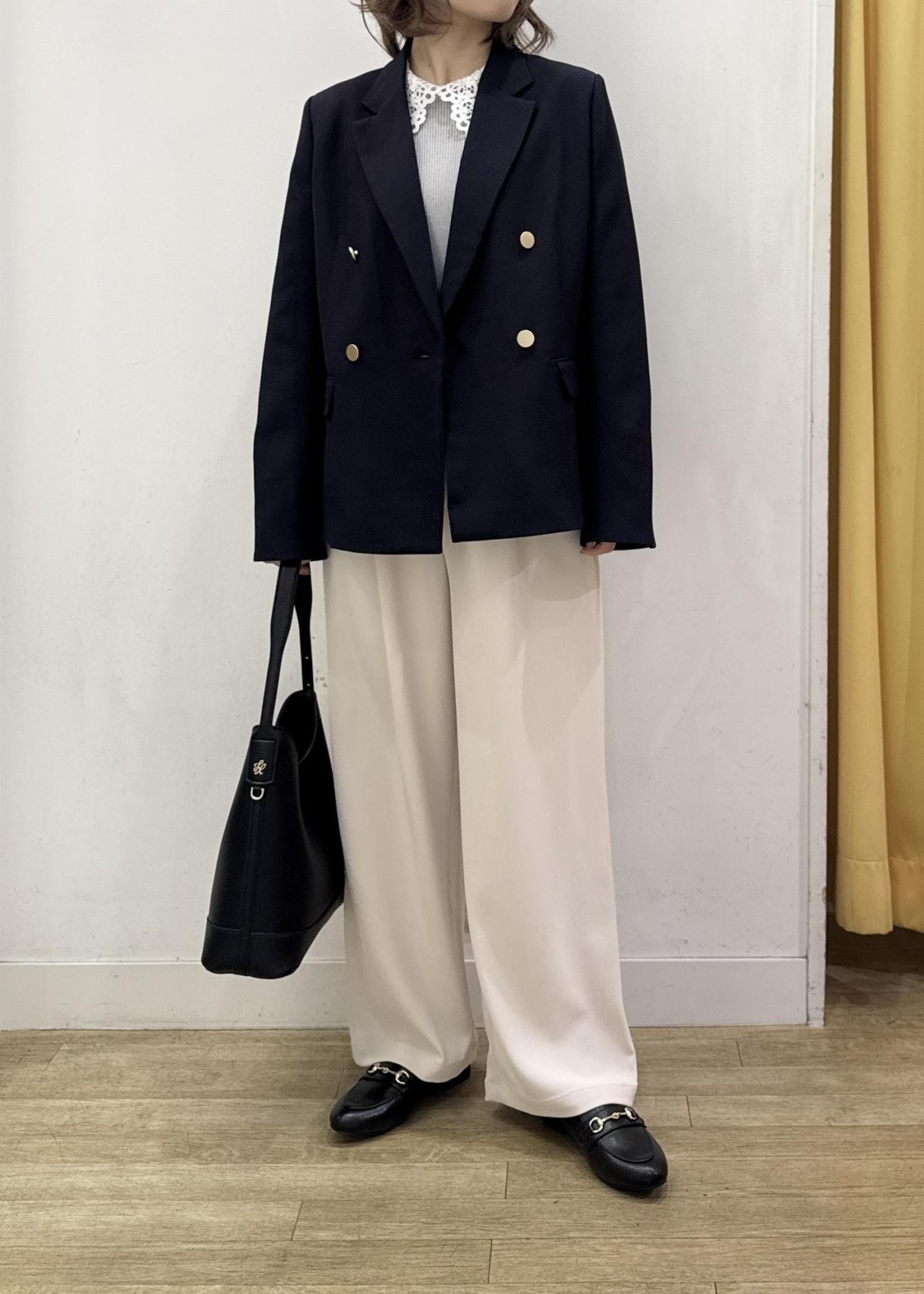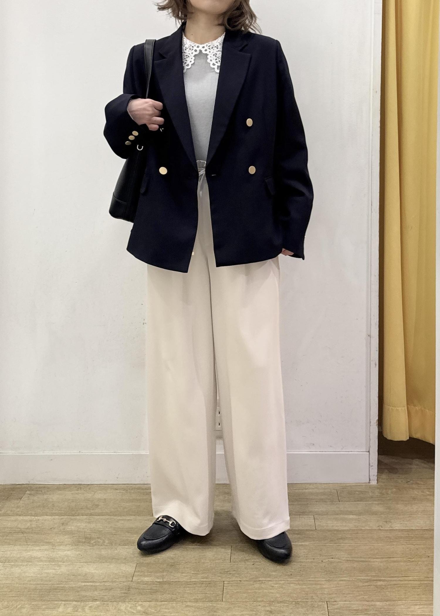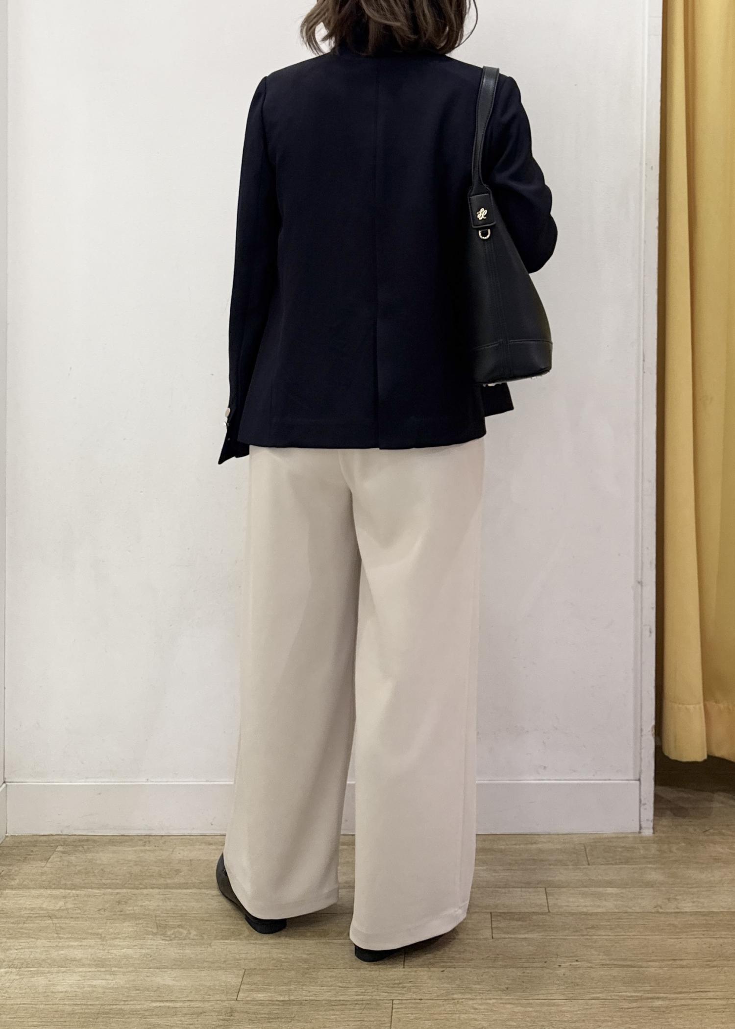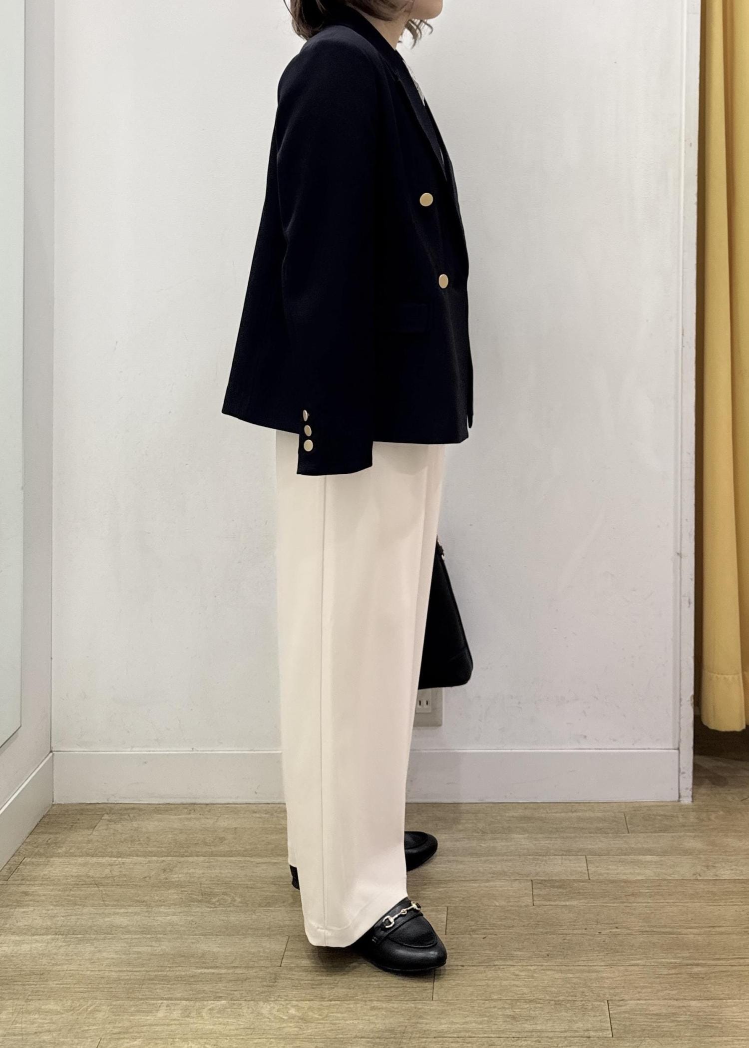 ヒップにかかるぐらいの着丈でスカート、パンツどちらにも合わせやすい長さです。 -