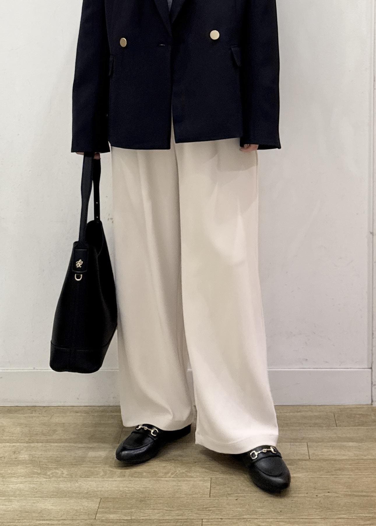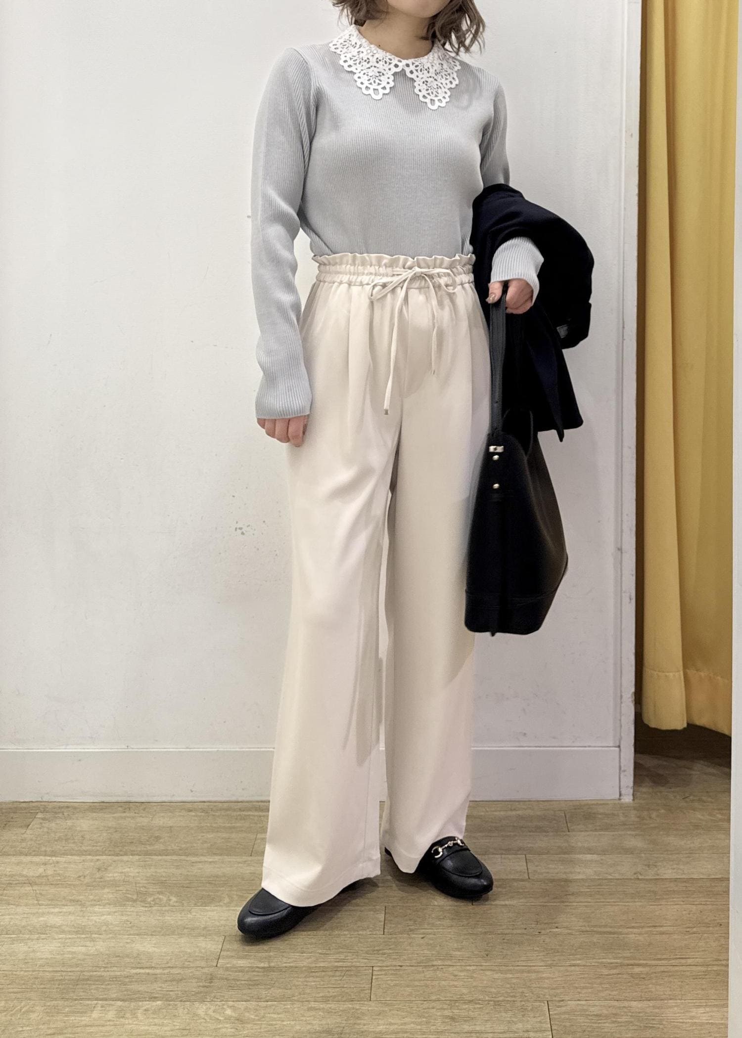 柔らかい素材感で、落ち感があり広がり過ぎないキレイなシルエットで着られるワイドパンツです。 -