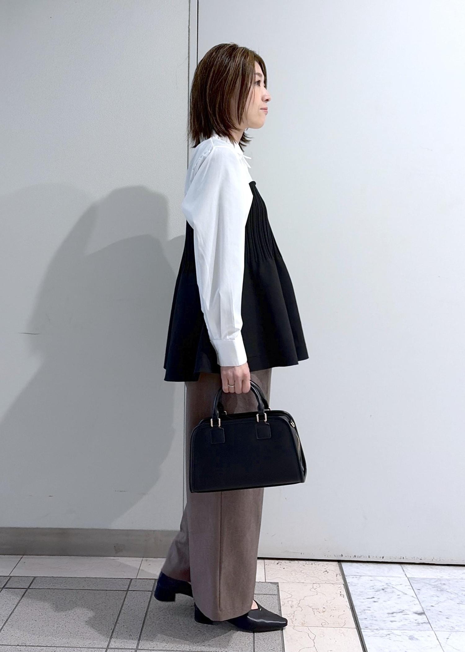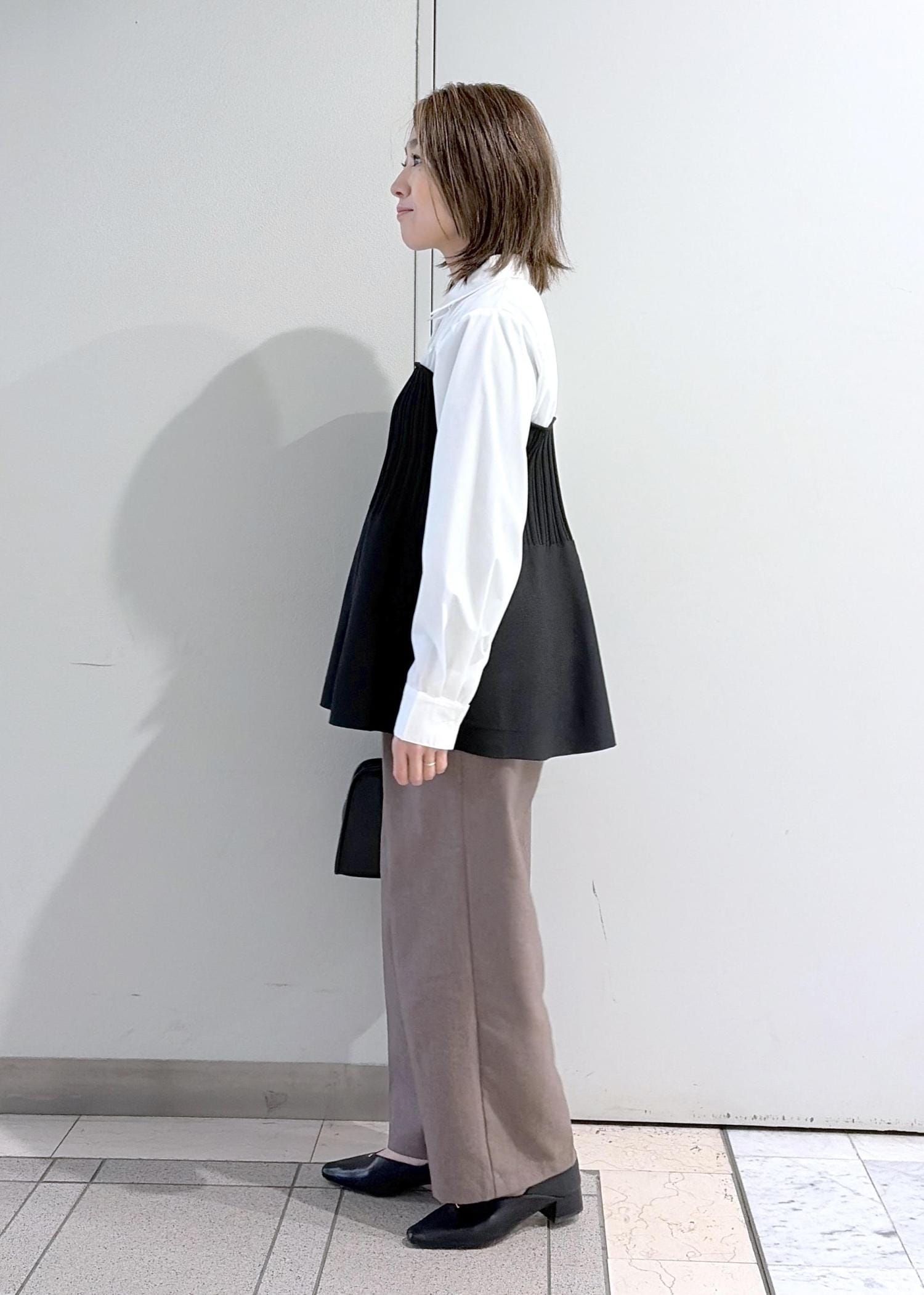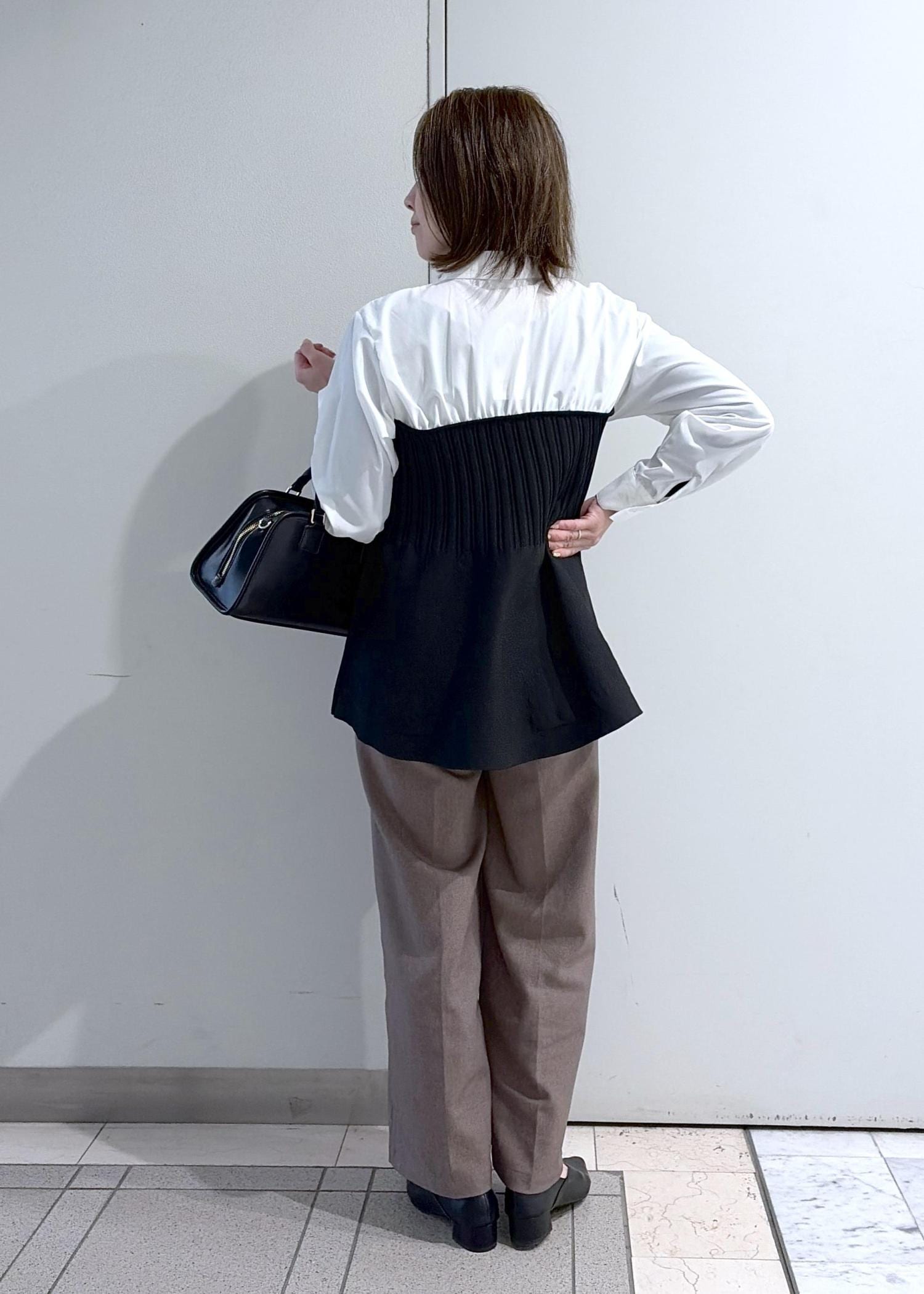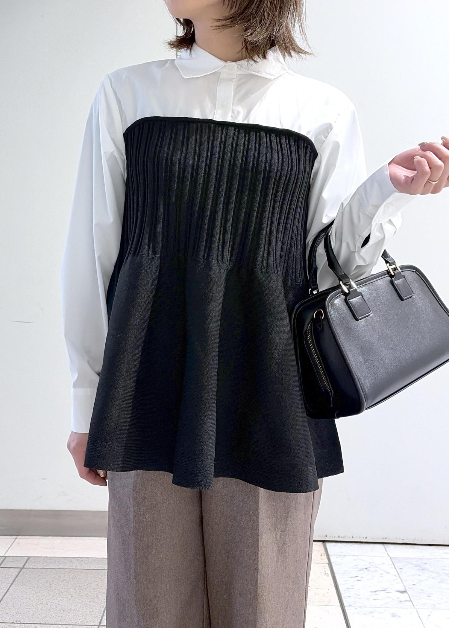ROPÉ PICNICシャツドッキングペプラムニットブラック / F¥5,995レビューニット部分は膨らみがあり、ペプラムシルエットが自然と綺麗に広がります。シャツ部分はやや透け感があります。パンツやタイトスカートとの相性が良いです。