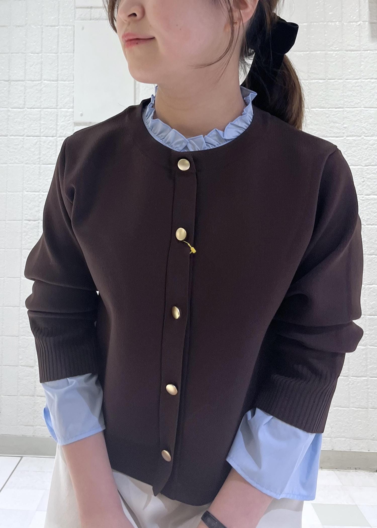 ROPÉ PICNIC襟フリルドッキングカーディガンダークブラウン / F¥5,995レビュー一枚で華やかになるカーディガンです