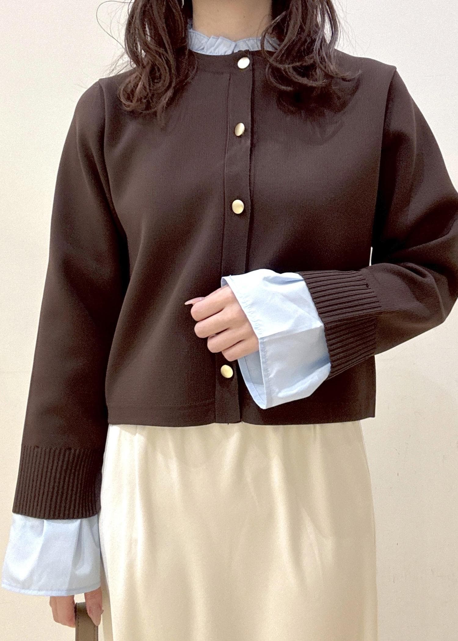 NEW!ROPÉ PICNIC襟フリルドッキングカーディガンダークブラウン / F¥5,995レビューハリ感がありしっかりとした素材です。