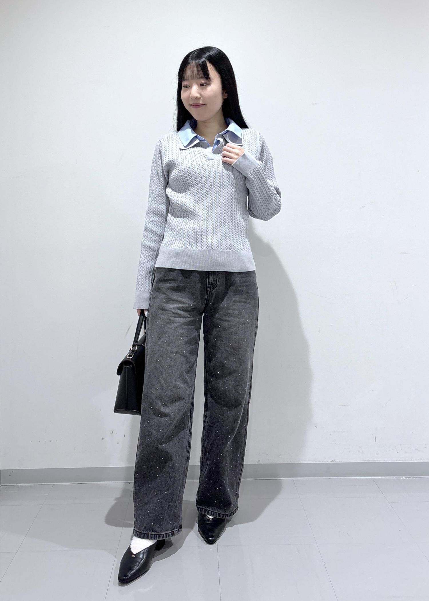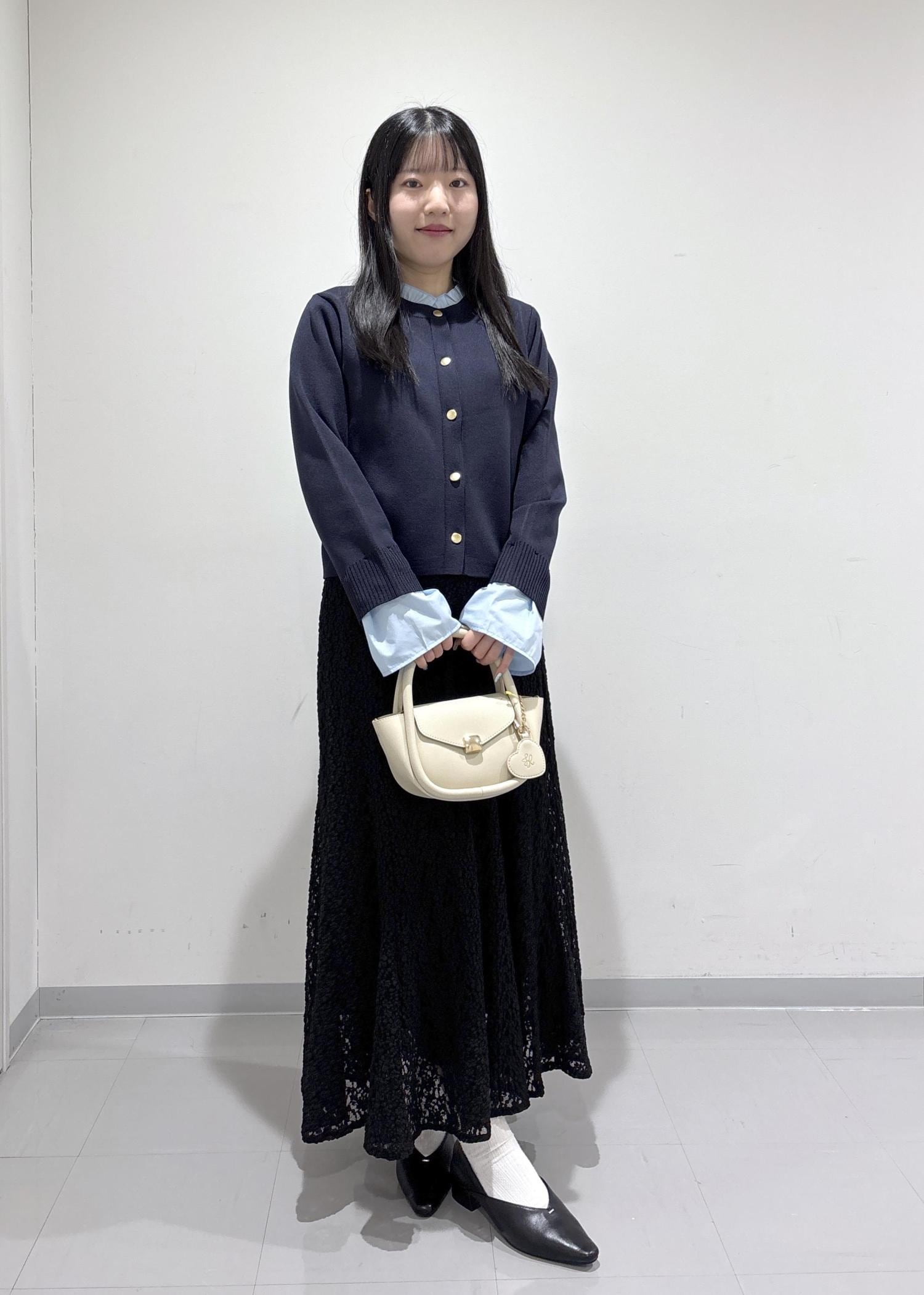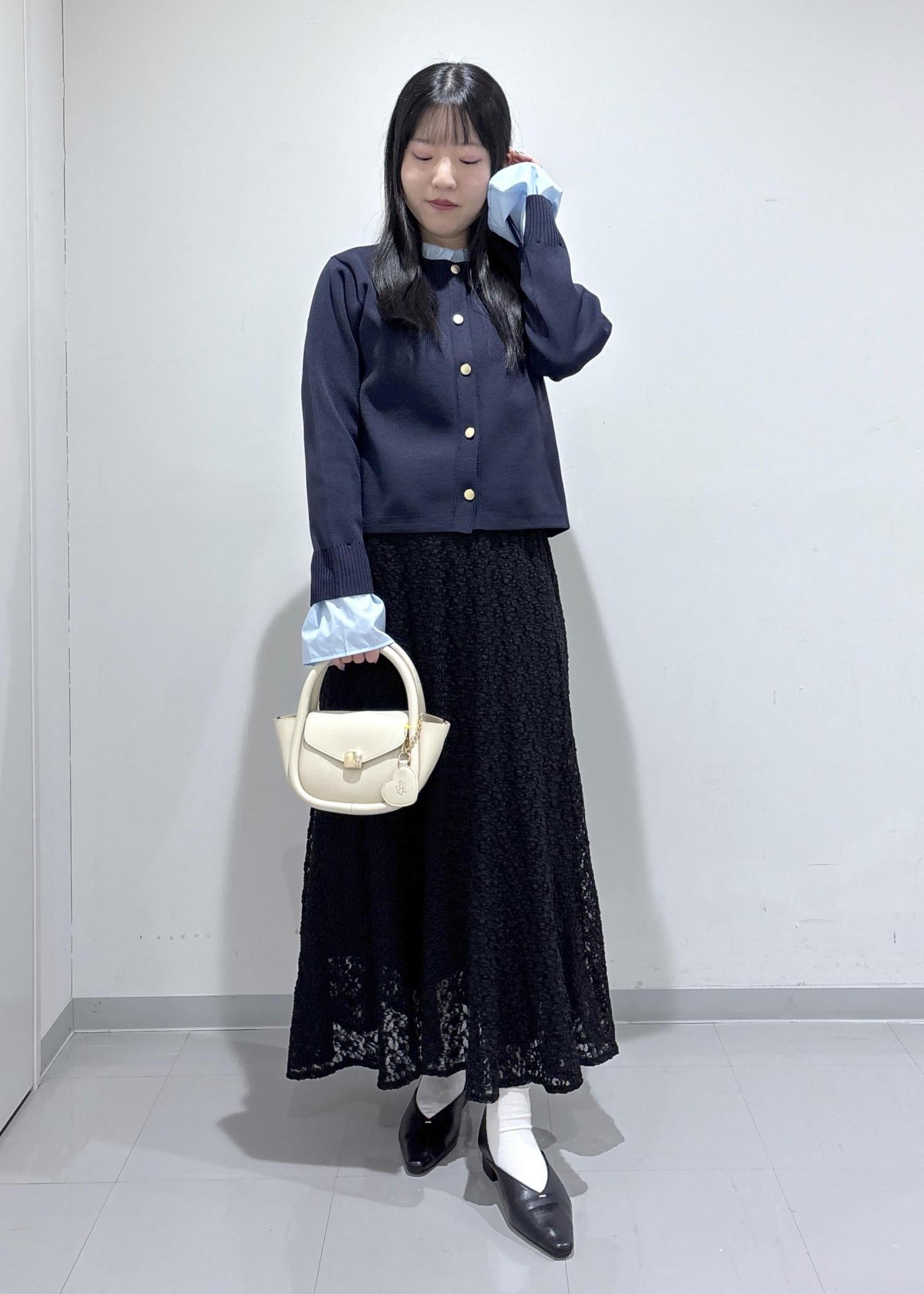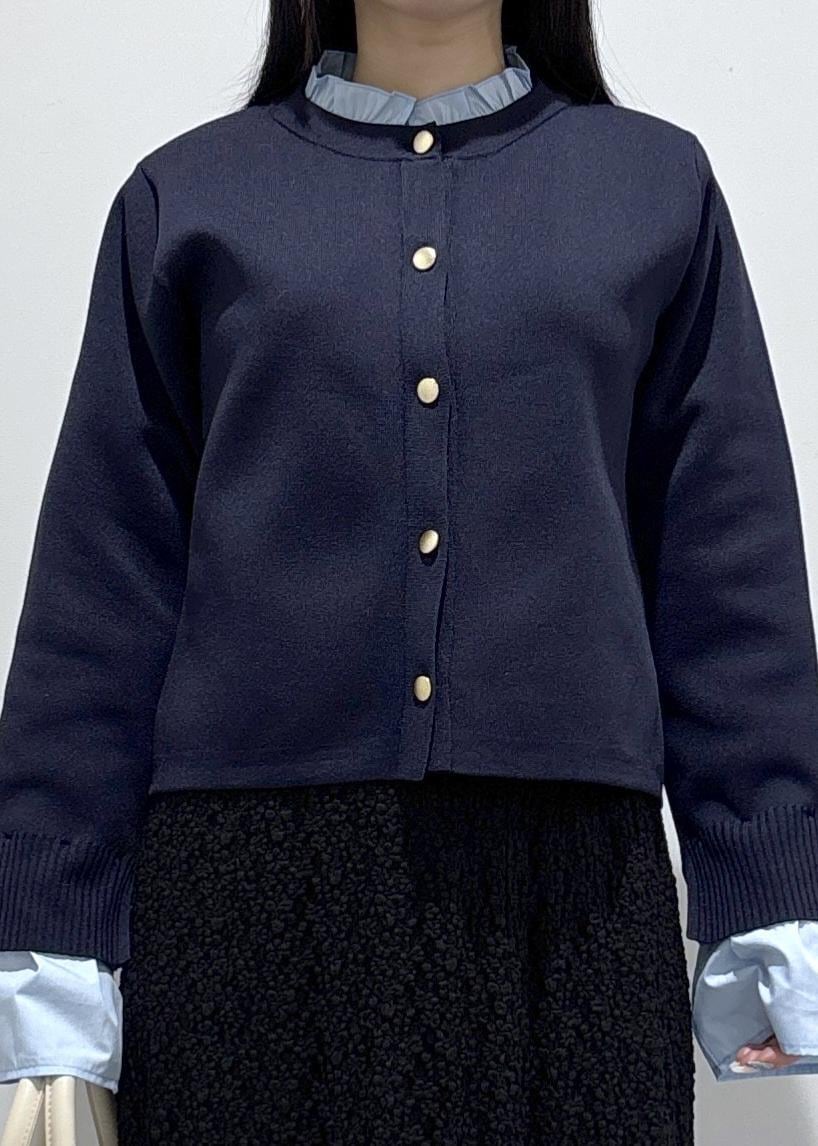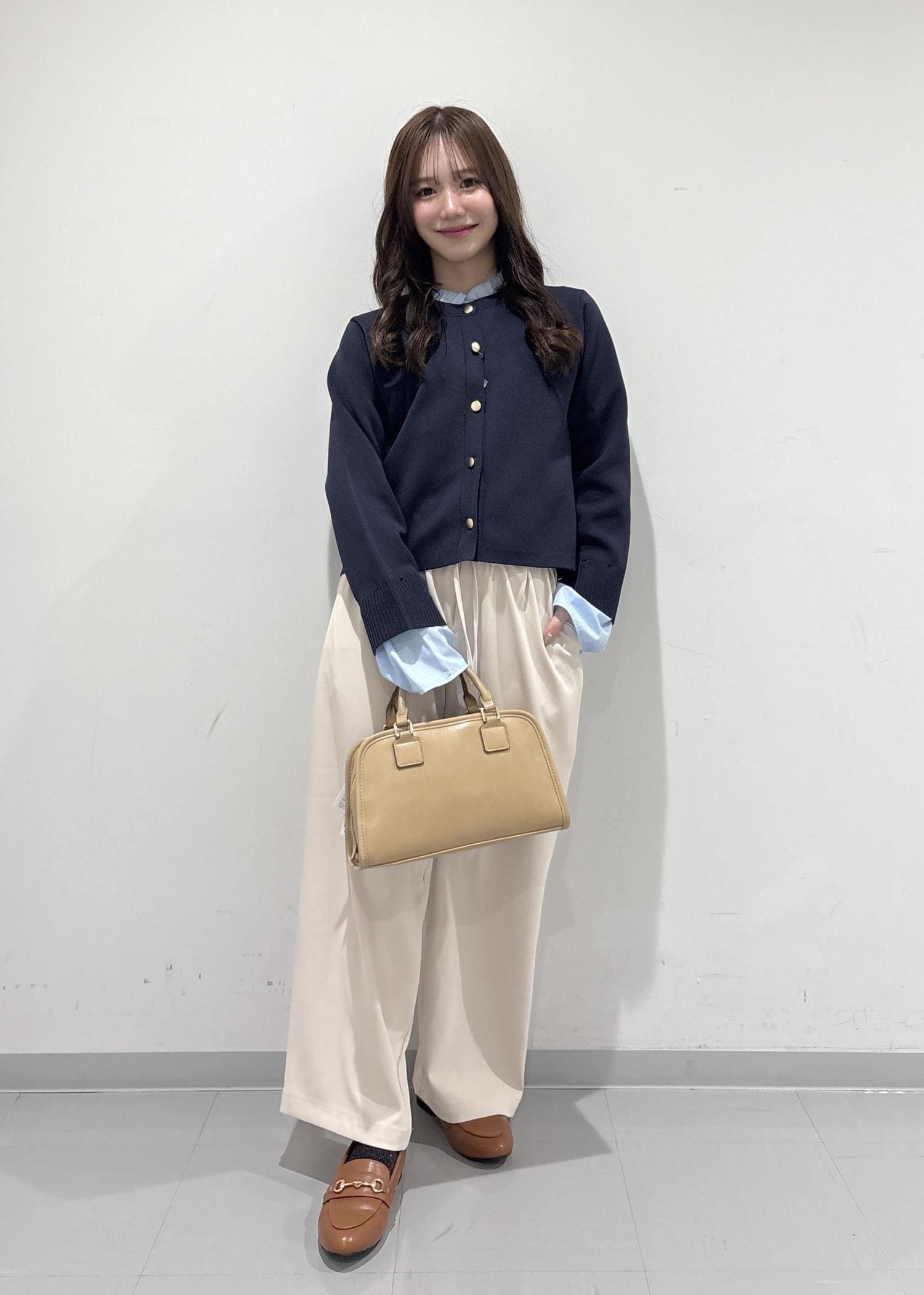カーディガンの襟と袖は取り外し可能なので、幅広いコーデに合わせやすいです◎