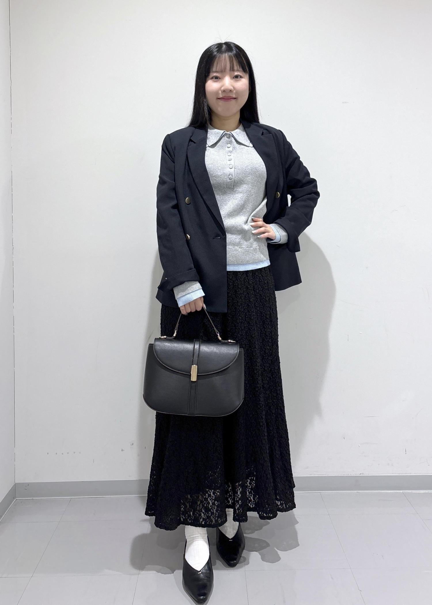 丈は腰くらいの長さなので、ロングスカート合わせでもバランスよく着られます。