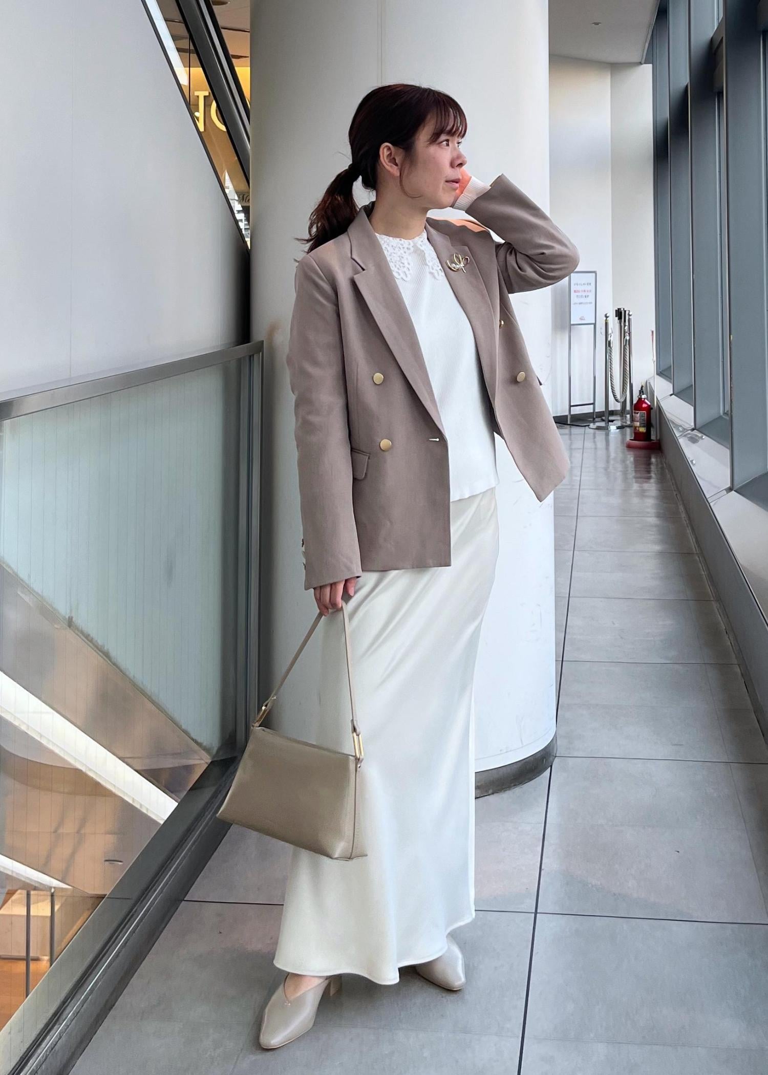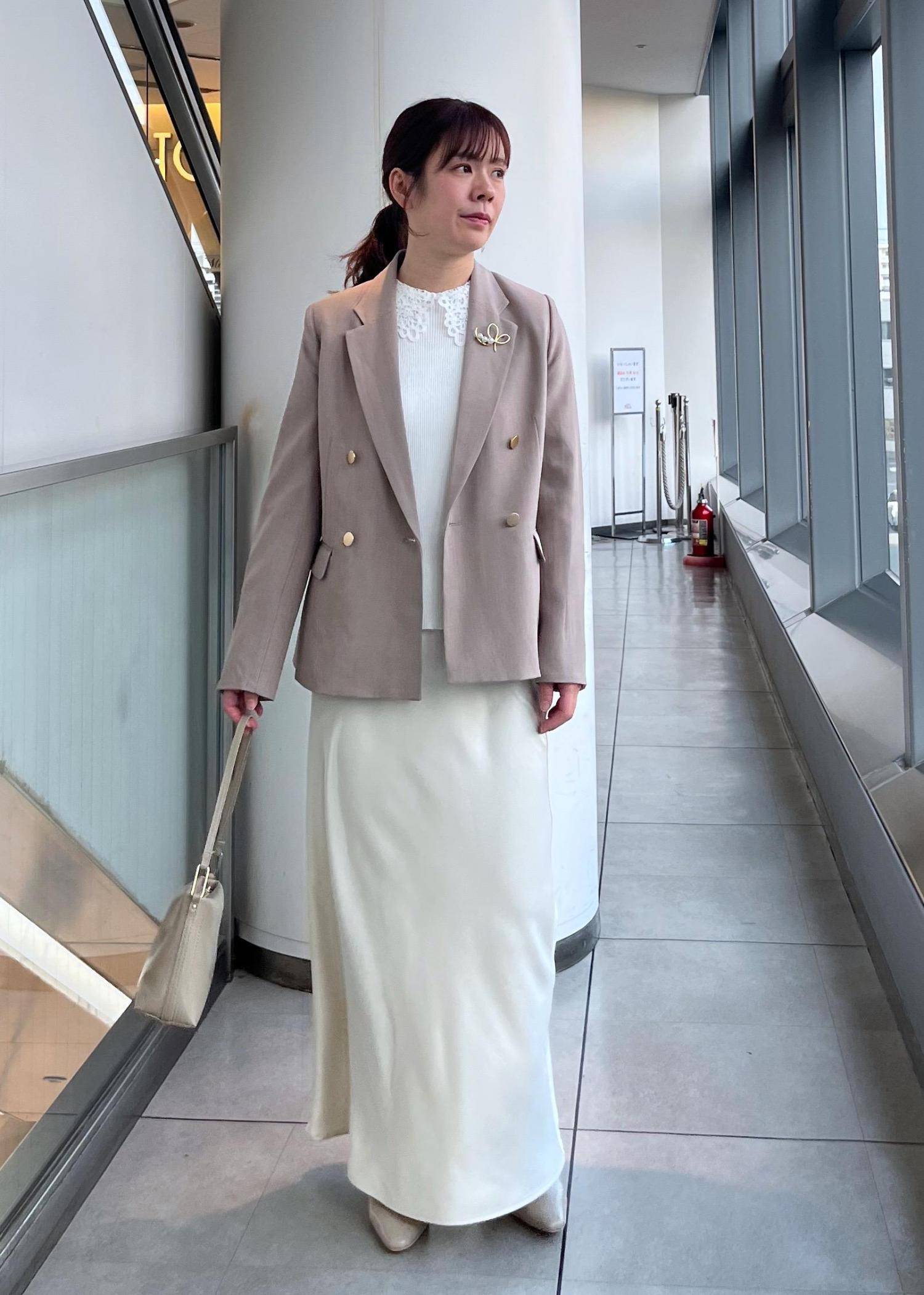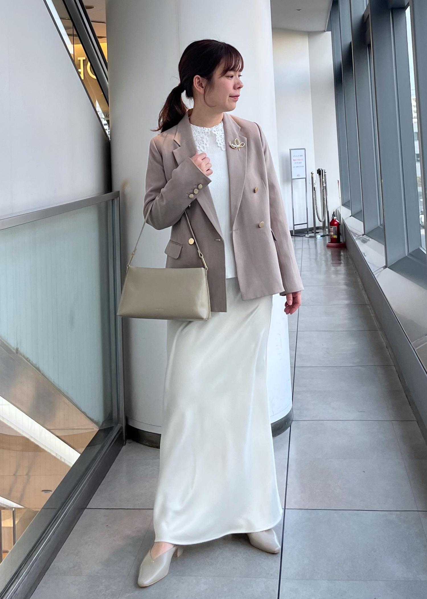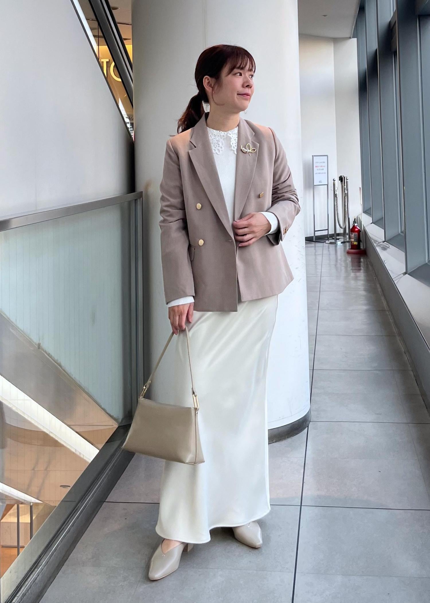 ROPÉ PICNIC細見えバイアスサテンスカート/イージーケアオフホワイト / F¥6,490レビュー光沢のあるサテン素材のスカートで上品な印象です。