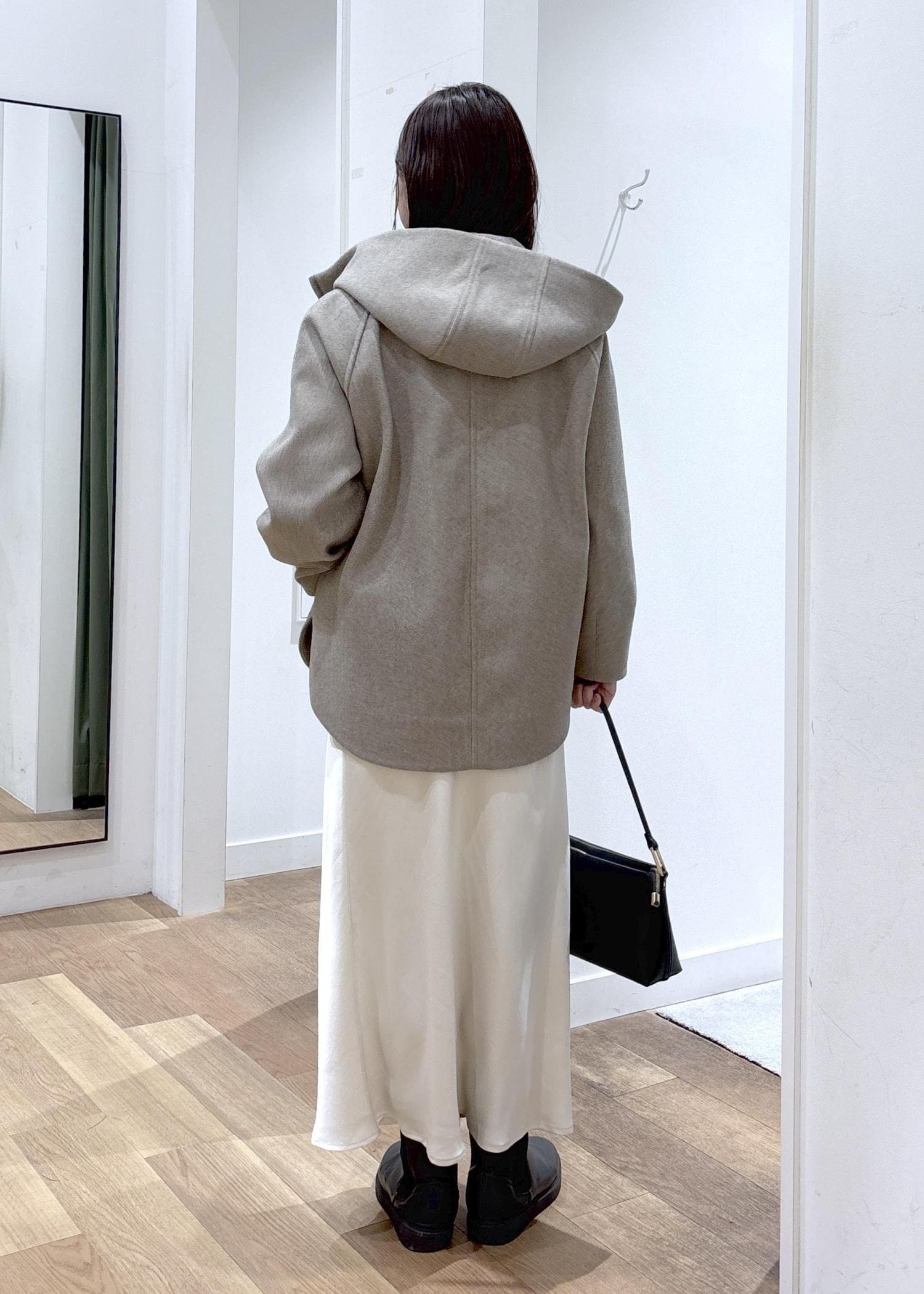 着丈は前後差があり、後ろはお尻が隠れるくらいの長さです。 -