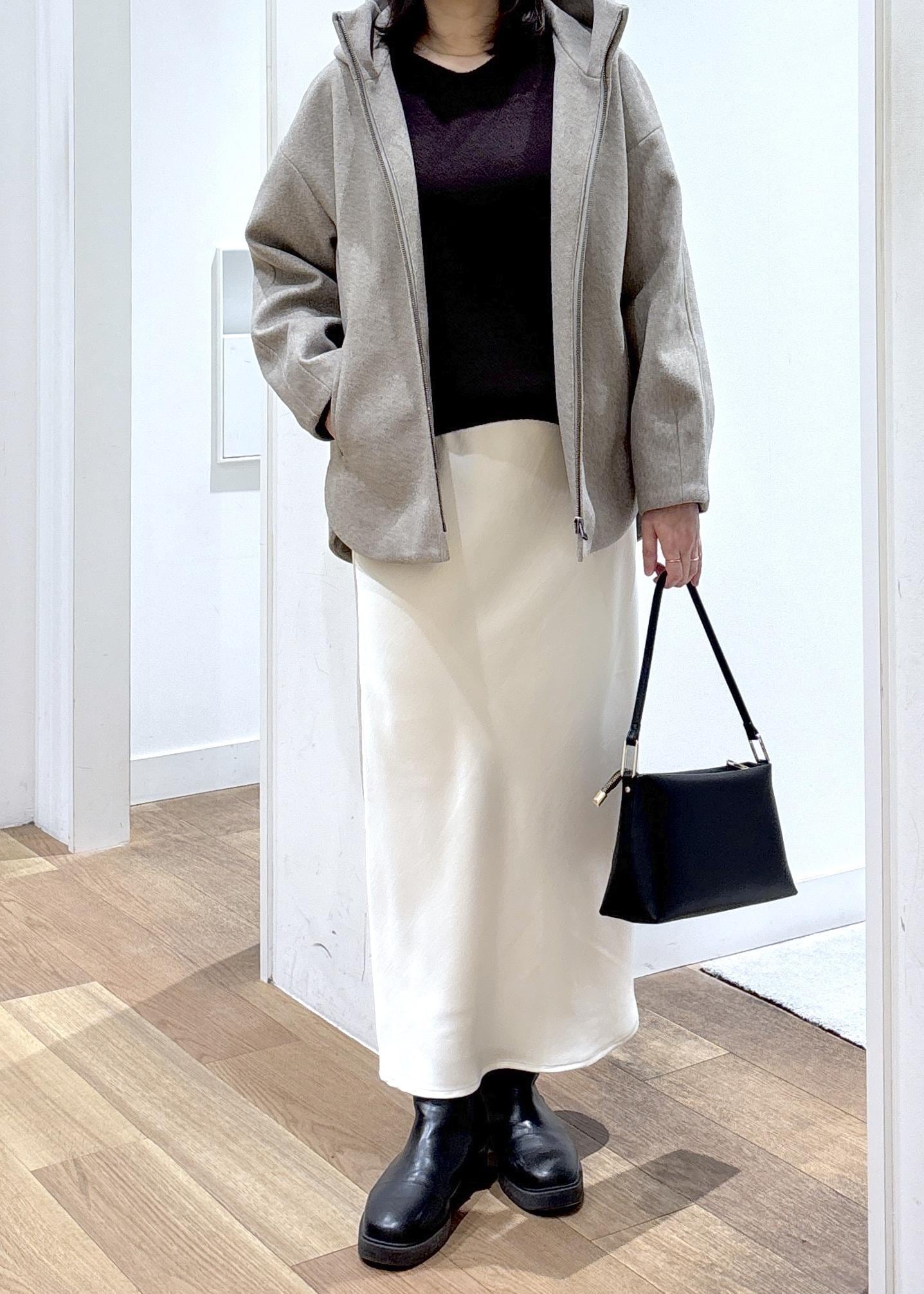 ROPÉ PICNIC細見えバイアスサテンスカート/イージーケアオフホワイト / F¥6,490レビュータイトすぎないアイラインとウエストゴムで、履き心地が楽で足さばきも◎です。腰が張っている為腰回りはフィット感がありました。162㎝で足首くらいの長さでした。