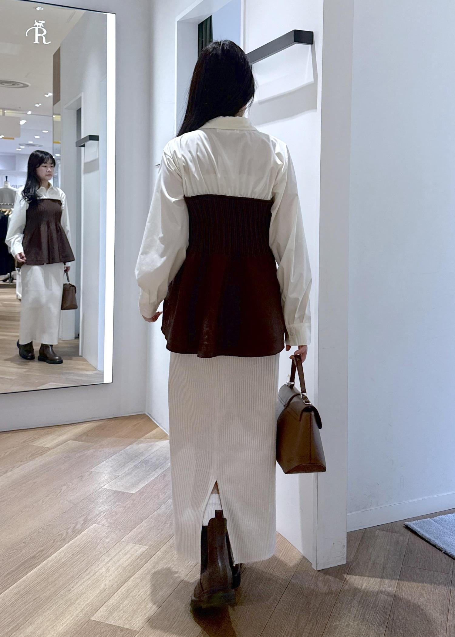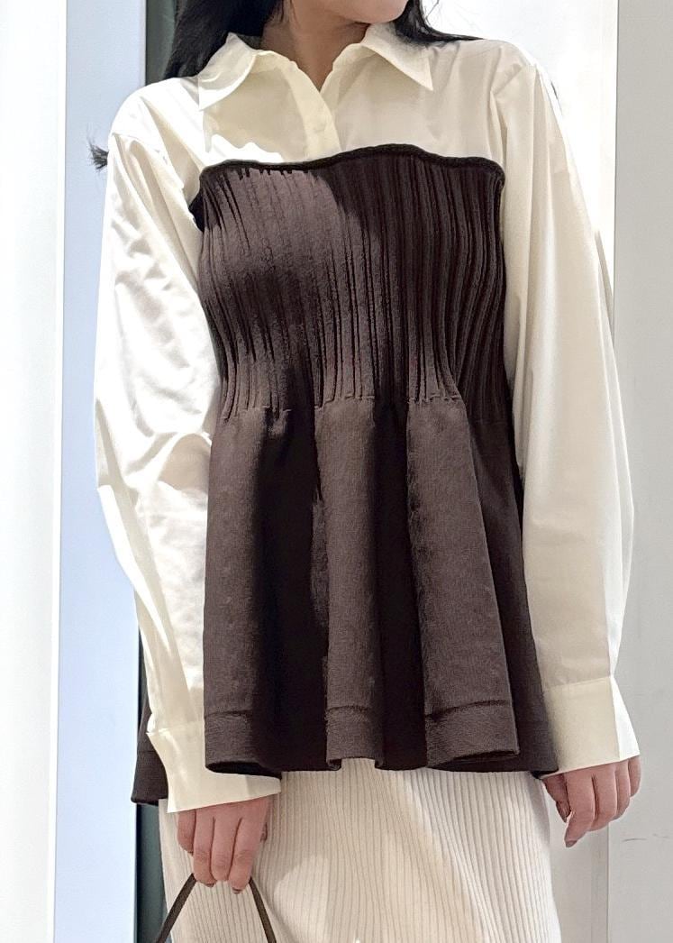 ROPÉ PICNICシャツドッキングペプラムニットブラウン / F¥5,995レビュー1枚でトレンド感のあるレイヤード風コーデが叶うアイテム。
