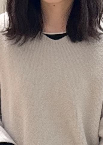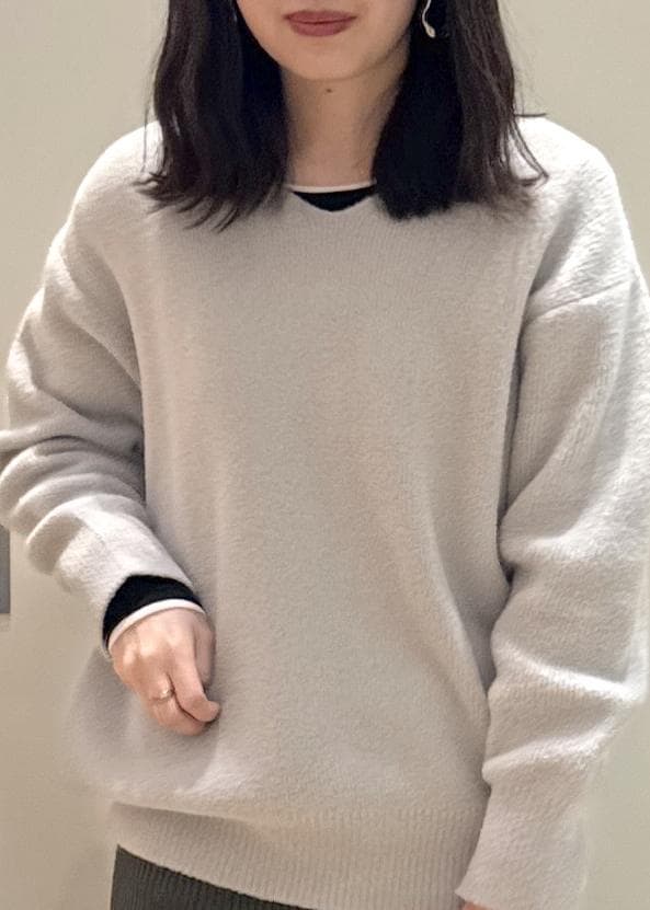 袖も身頃もゆったりとした着心地で、さらにVネックなのでシャツやシアートップスと重ねても合わせやすいです◎