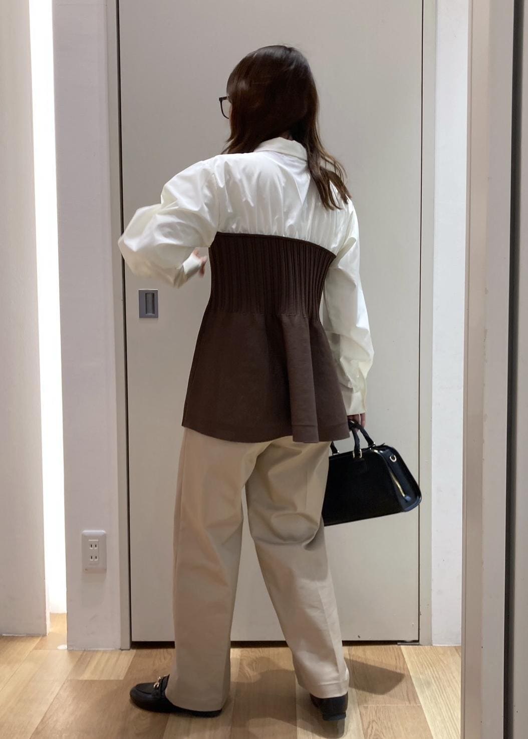 ROPÉ PICNICシャツドッキングペプラムニットブラウン / F¥5,995レビューニット部分には膨らみのある素材感で、気になるお腹や腰回りを自然にカバーしてくれます。