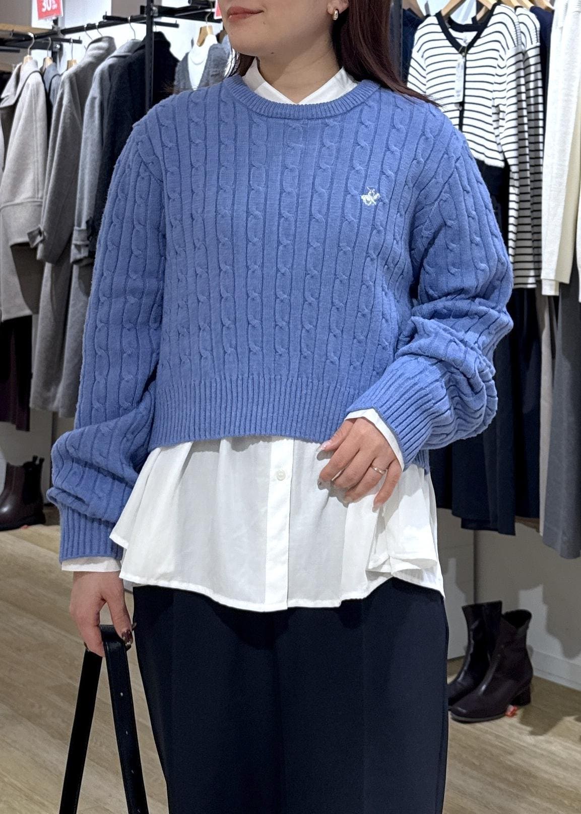 ROPÉ PICNIC【BEVERLYHILLS POLO CLUB・WEB限定】ケーブル編みクロップドニットプルオーバーサックス / F¥5,489レビュー袖丈は長めで、着丈は腰丈です。