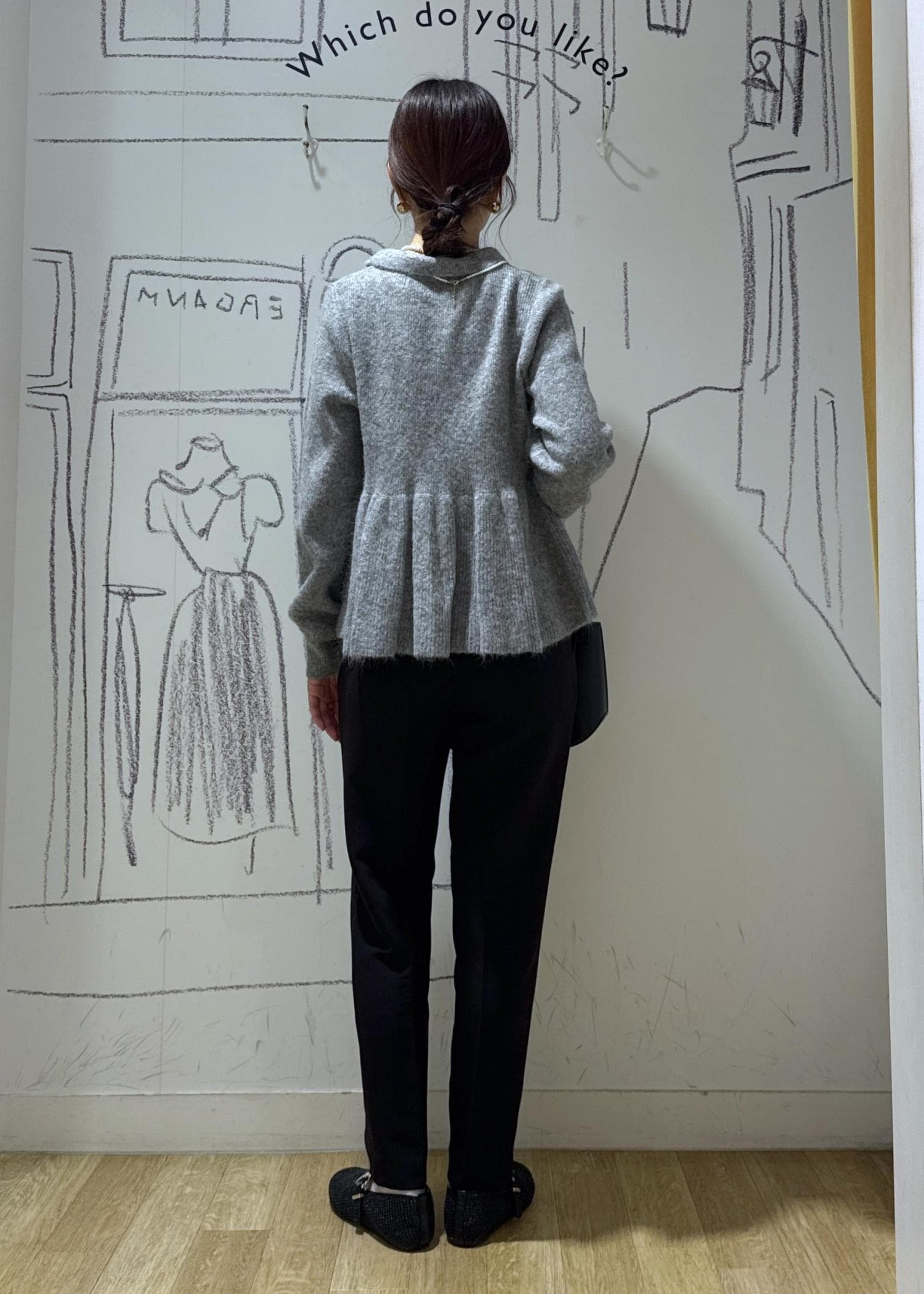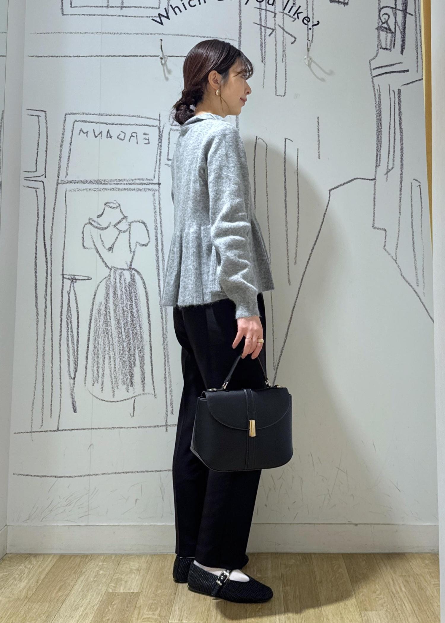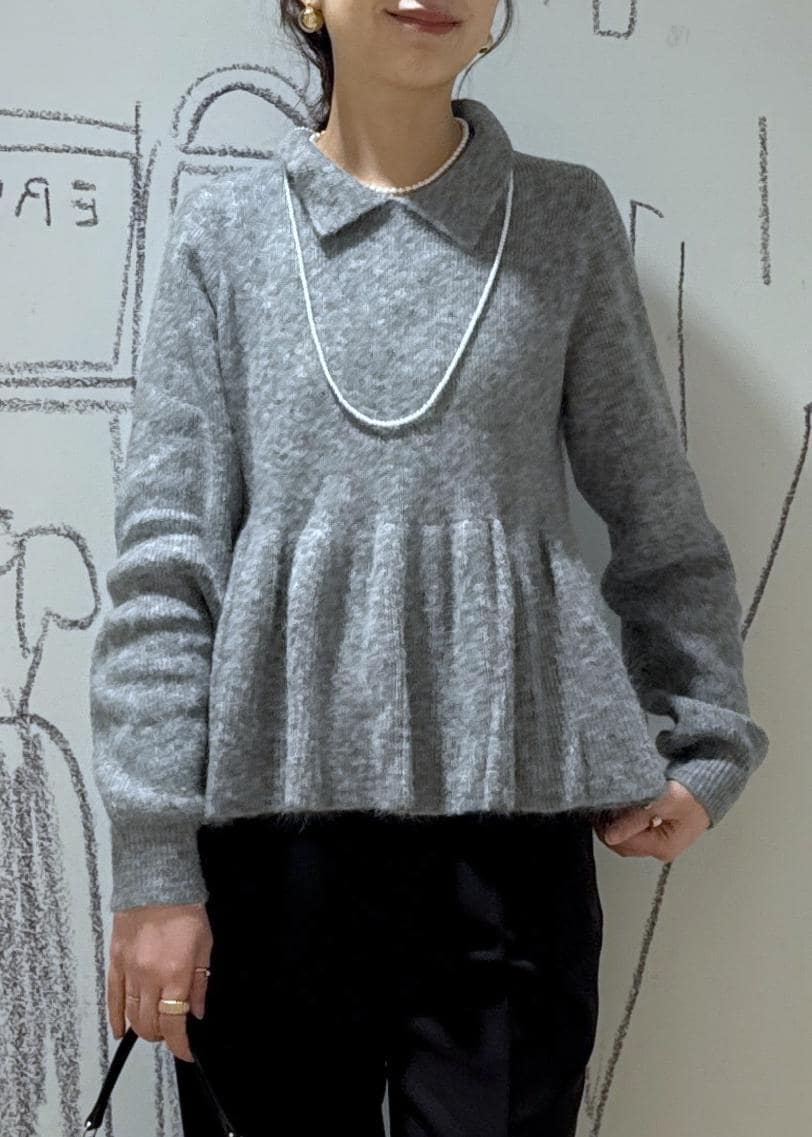 甘さのあるペプラムニットはモノトーンや