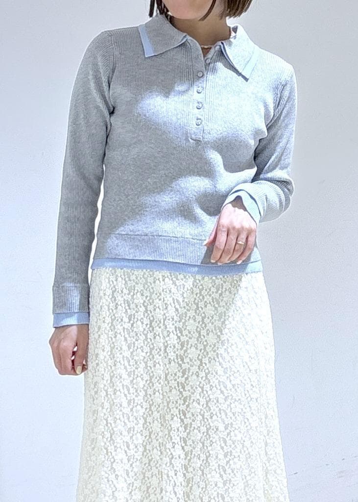 レイヤード風のリブポロニットに
