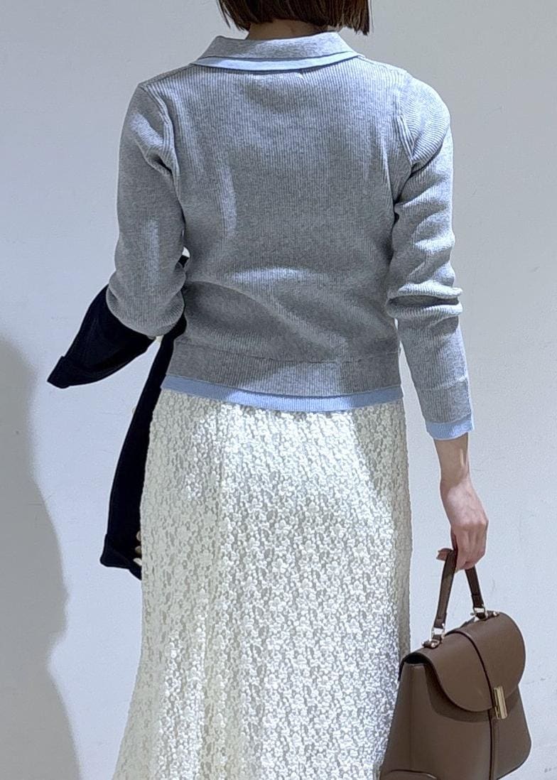 重ね着しているようなデザインなので、忙しい朝でも一枚でお洒落見えしてくれるニットです♪