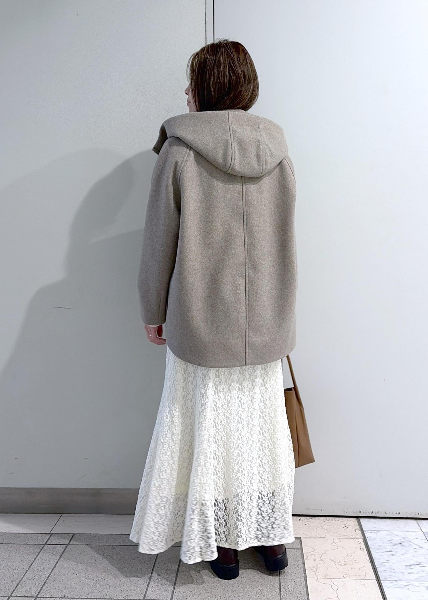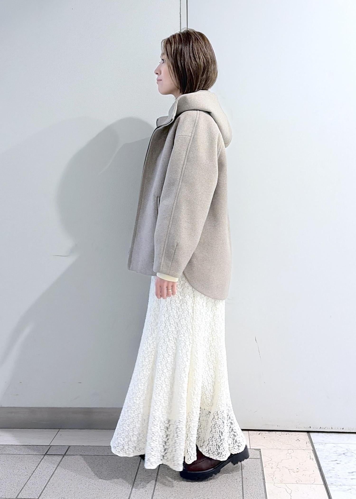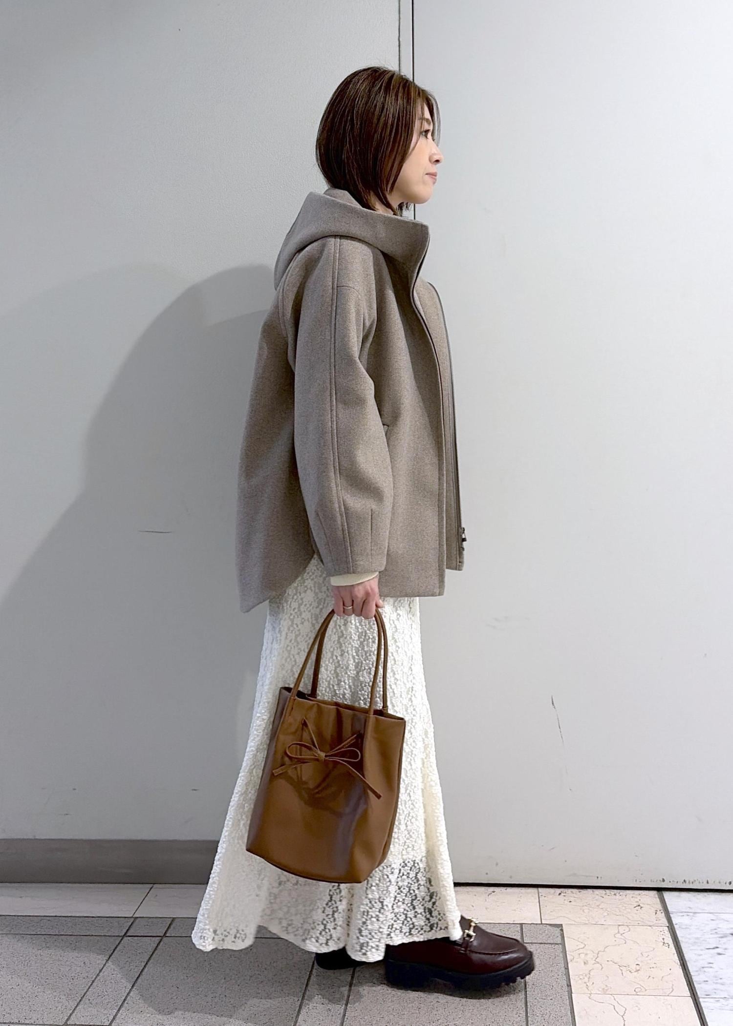 ゆとりのあるサイズ感で体型カバーにもなります。着丈は前後差があり、サイドの丸みあるカットが可愛いらしいデザインです。