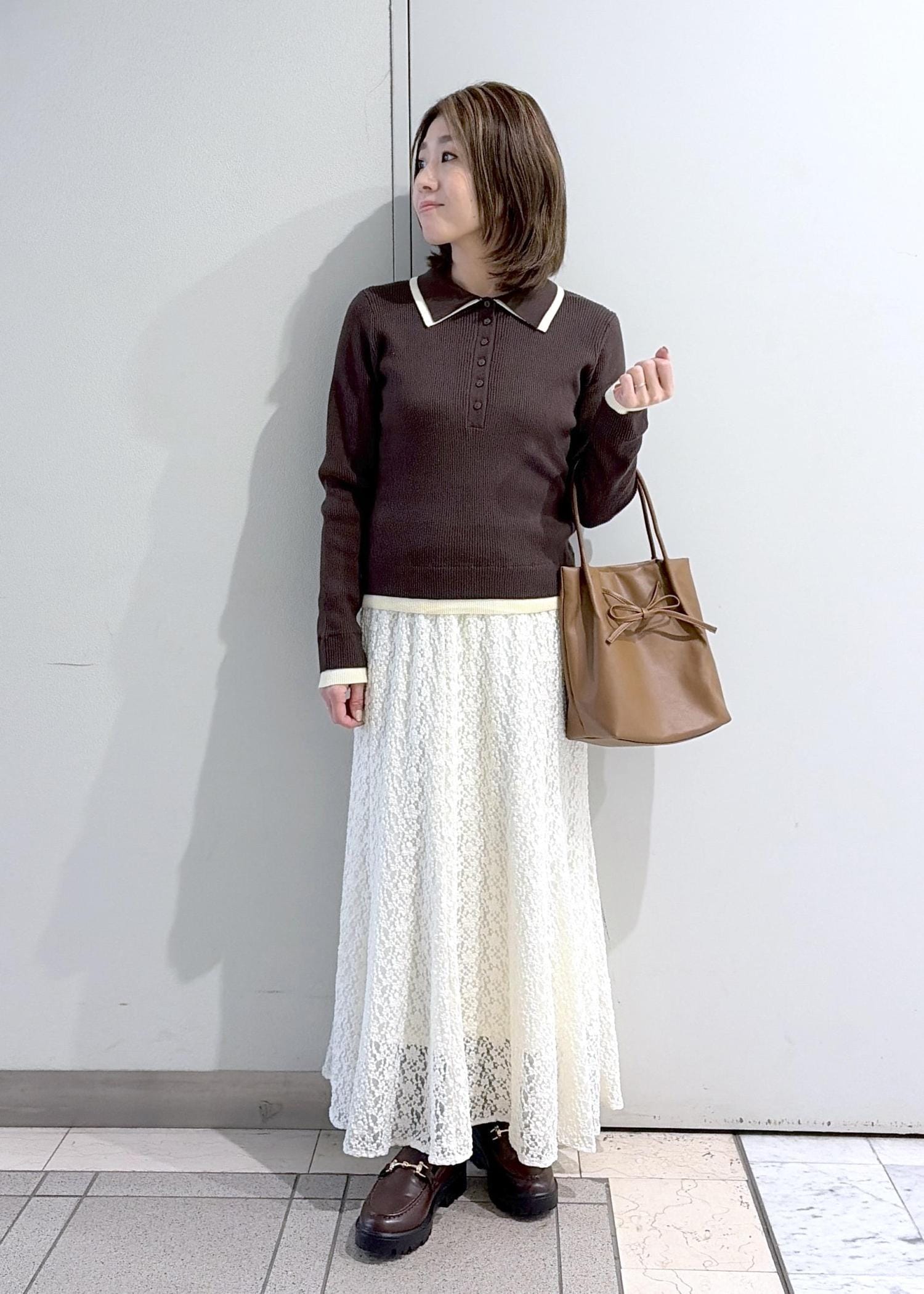 NEW!ROPÉ PICNICレイヤード風リブポロニットブラウン / F¥5,489レビューフィット感がありますが、程よくゆとりのあるコンパクトニット。パンツでもスカートでも合わせやすい丈感です。