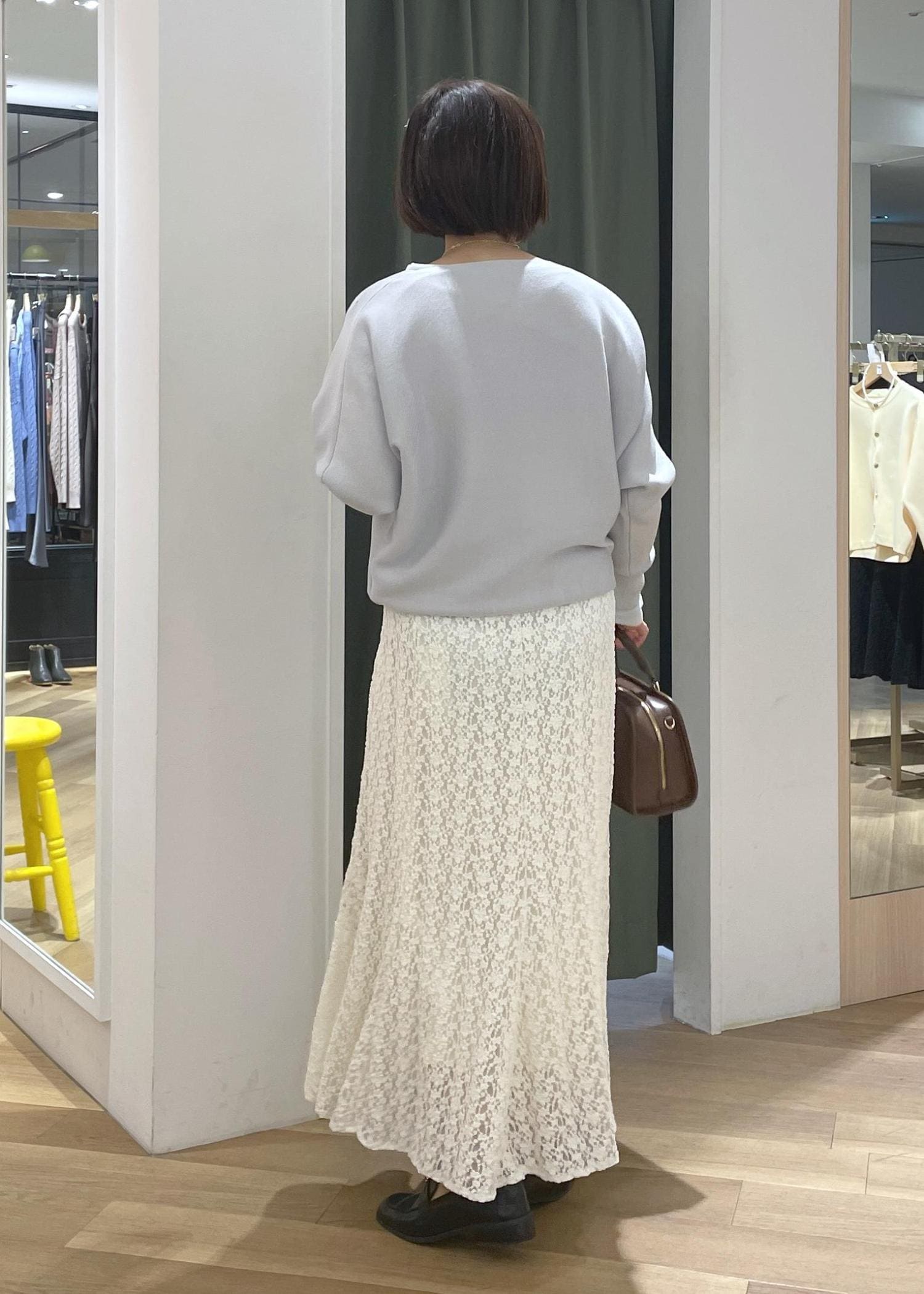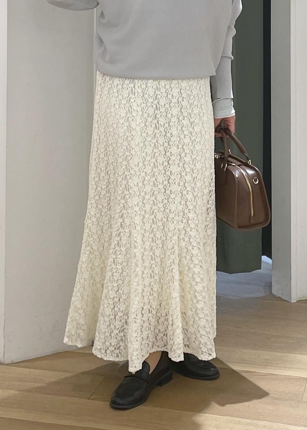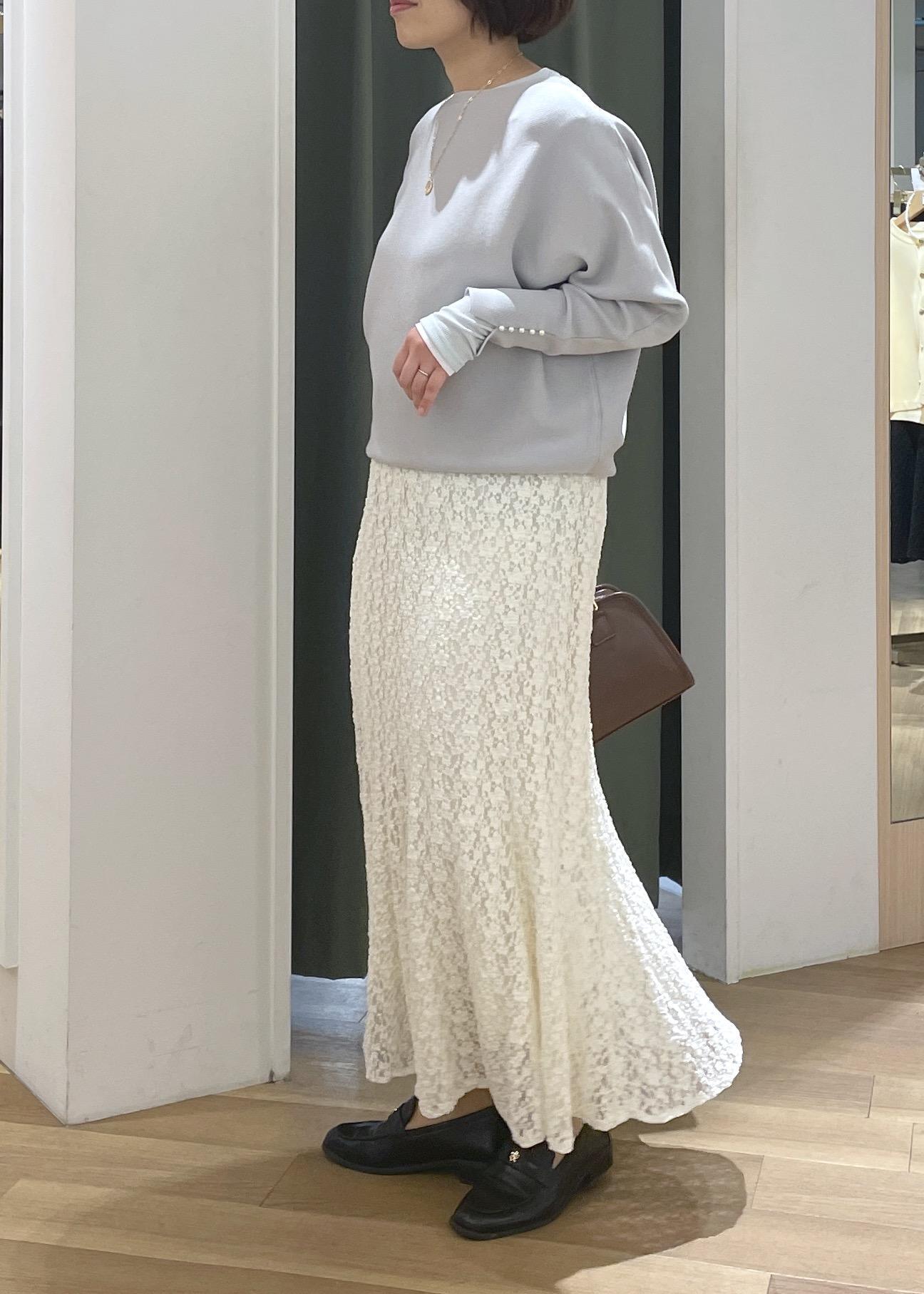 マシュマロドルマンニットのレーススカートコーデ
