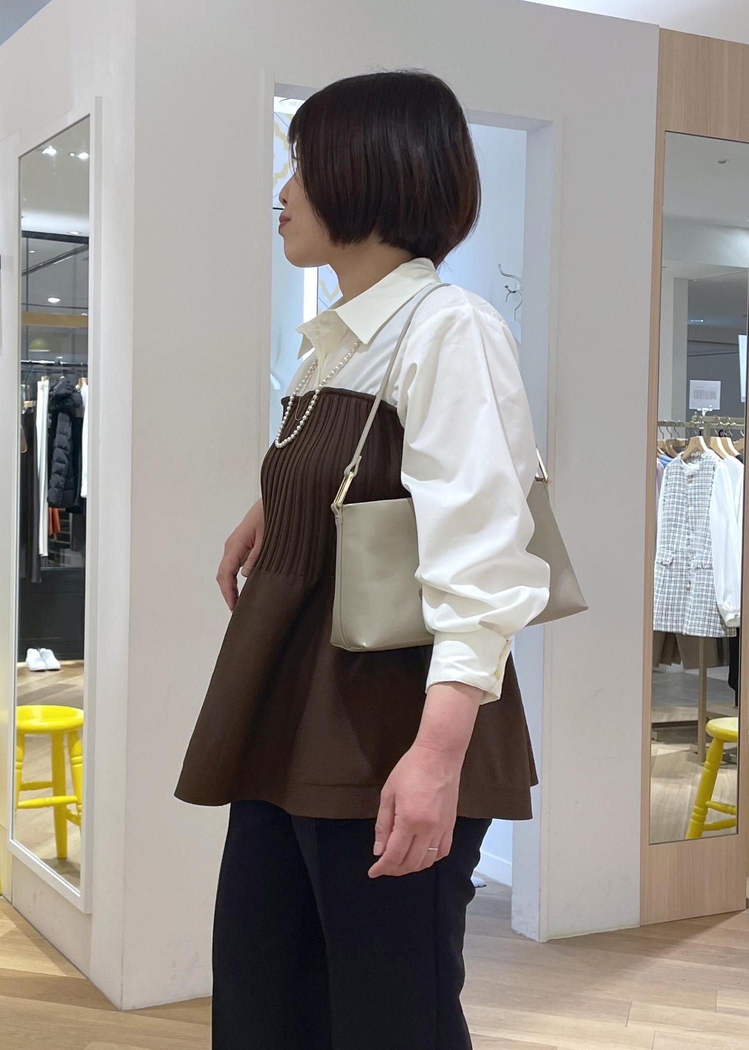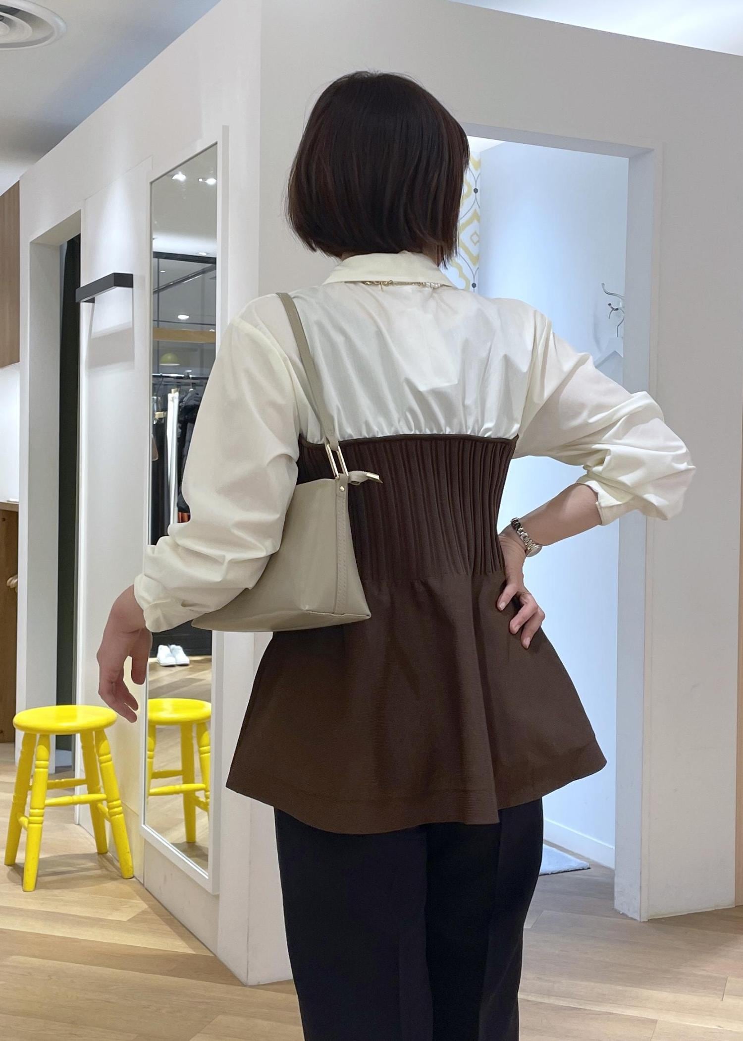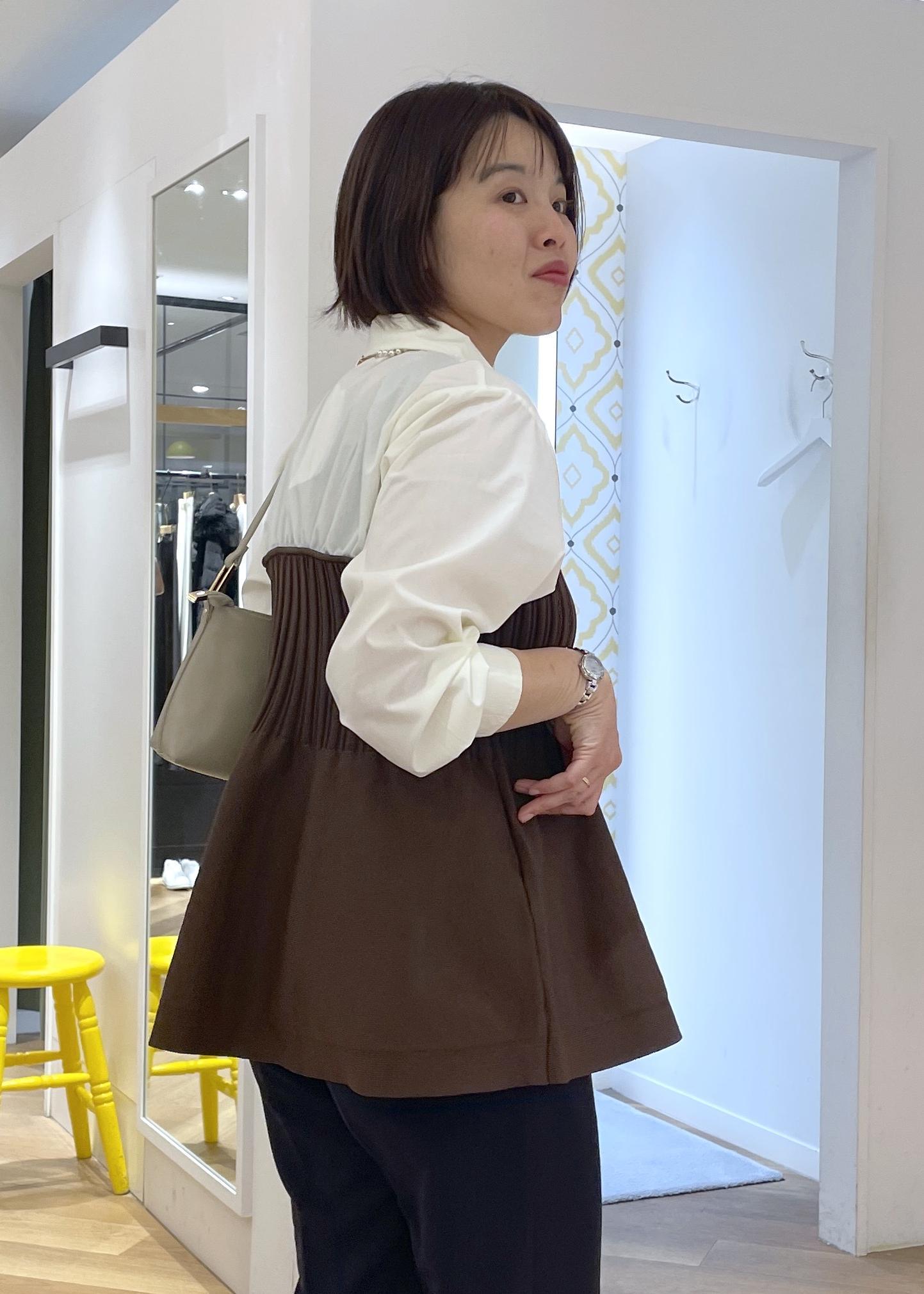 ROPÉ PICNICシャツドッキングペプラムニットブラウン / F¥5,995レビューシャツとペプラムニットのドッキングデザインで、1枚でおしゃれに決まるトップスです。ニット部分はふんわりと広がる、膨らみのある素材です。柔らかく伸縮もある生地です。着丈はヒップに掛かるくらいの長さで、体型カバーもしてくれます。
