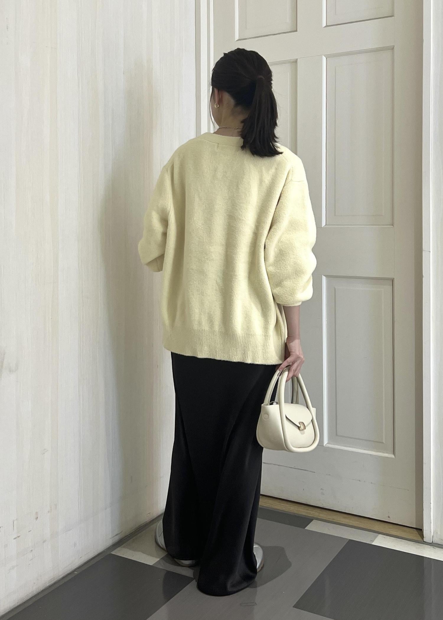 ROPÉ PICNIC【新色追加】スフレニットシリーズ 変形メタルボタンミドル丈カーディガン/イージーケア・リンクコーデクリーム / F¥3,293レビューヒップが隠れるくらいの丈で、袖はたっぷりとしたシルエットでした。