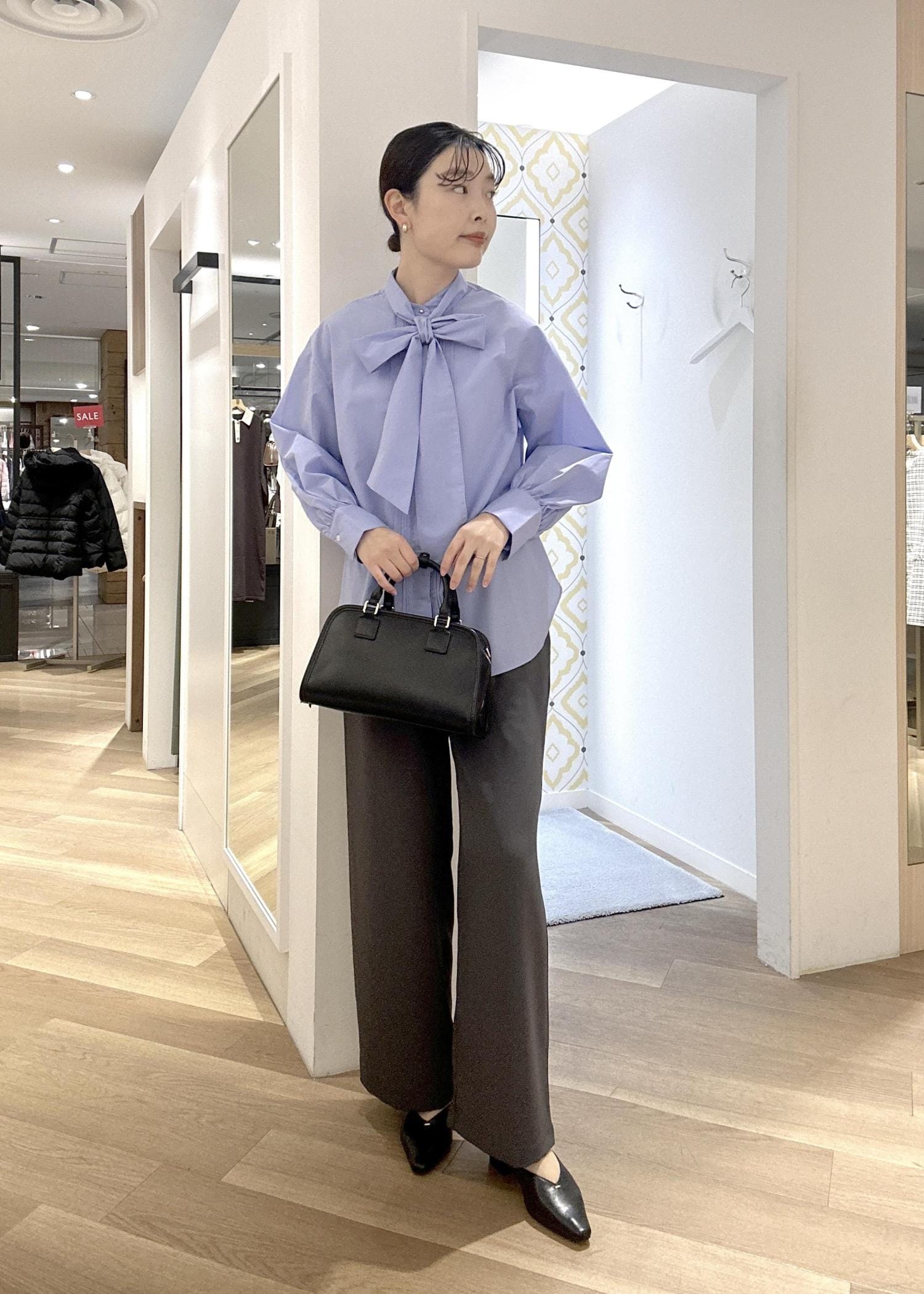 ROPÉ PICNICボウタイリボンシャツ/花粉ガード・防シワブルー / F¥5,995レビューハリのある生地で存在感のあるブラウスです! ボウタイがあるとより華やかな印象になります♪