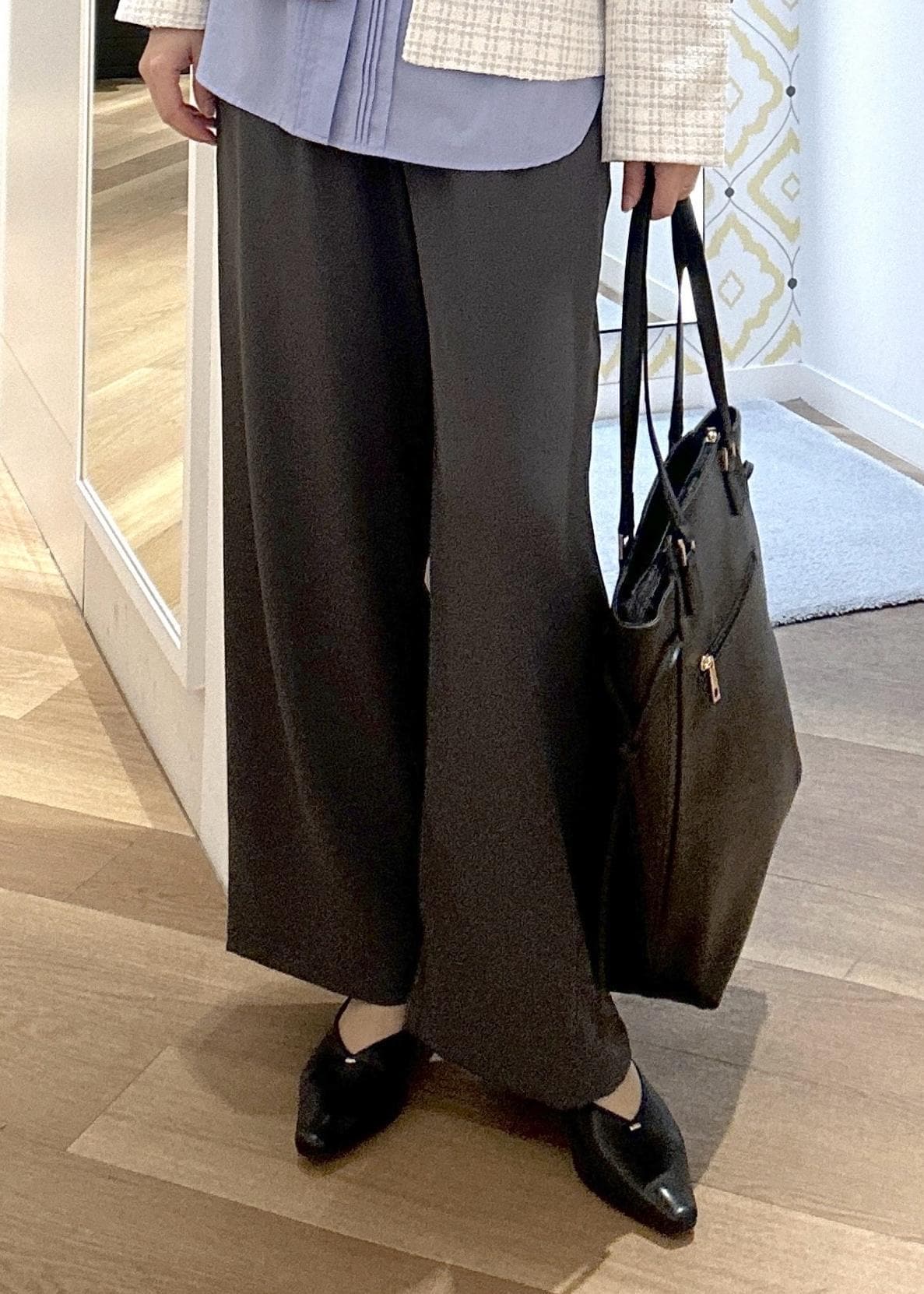 NEW!ROPÉ PICNICステファニージョグイージーワイドパンツチャコール / M¥5,489レビューテロっと落ち感のある素材ですが、艶のある風合いでラフすぎない印象に。キレイめコーデにも合わせて頂けます♪