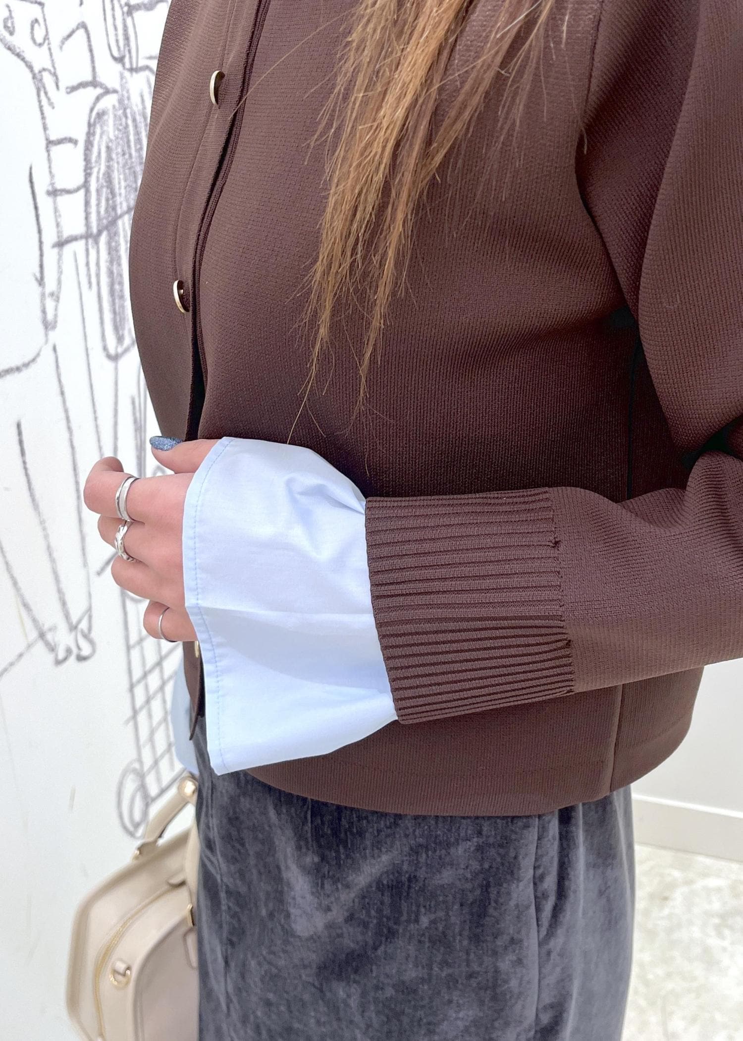 NEW!ROPÉ PICNIC襟フリルドッキングカーディガンダークブラウン / F¥5,995レビュー重ね着苦手…そんな方におすすめのカーディガンです。取り外し出来るシャツの襟とお袖があるので、レイヤードスタイルに見えます。しっかりとした生地のニットで身体のラインを拾いません。身幅は、適度なゆとり。控えめな光沢の金釦が大人っぽい。