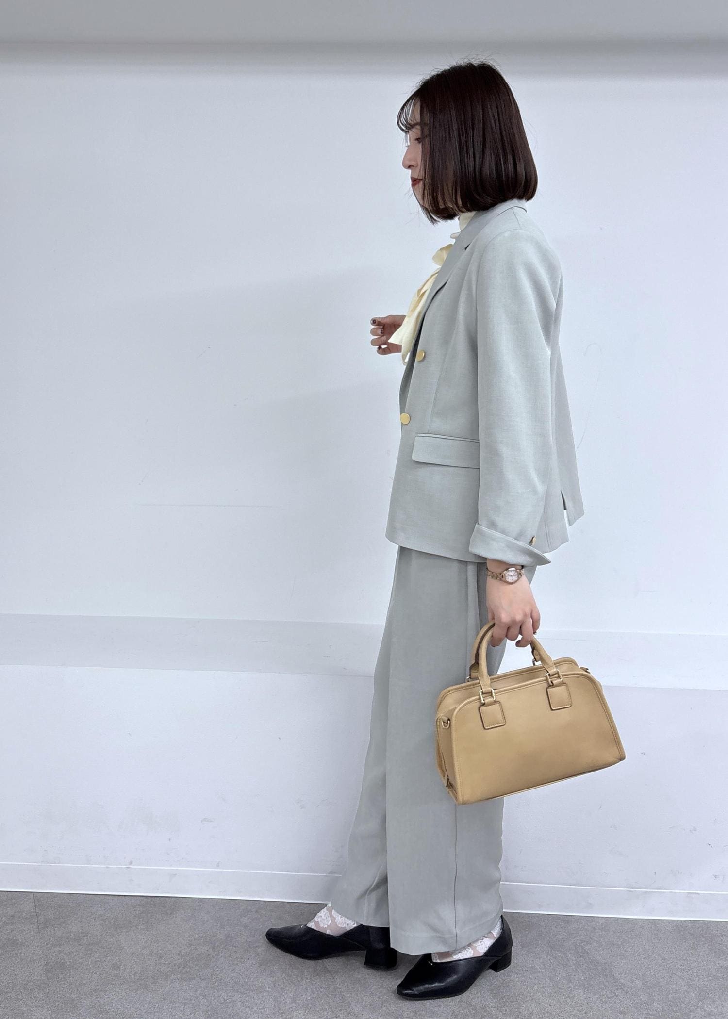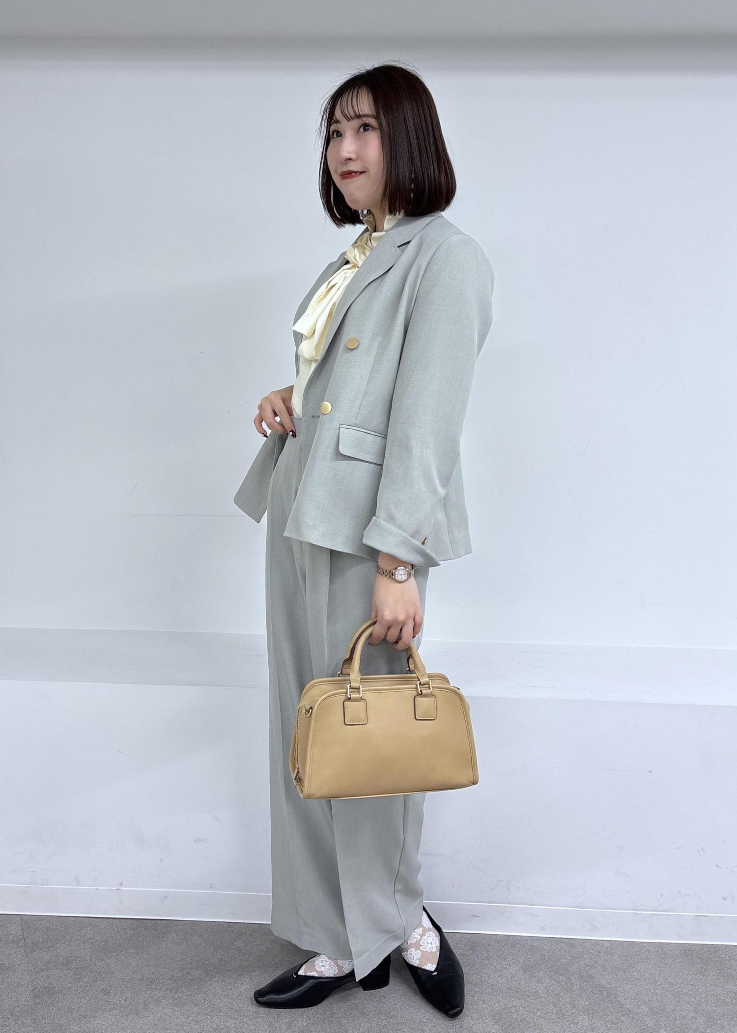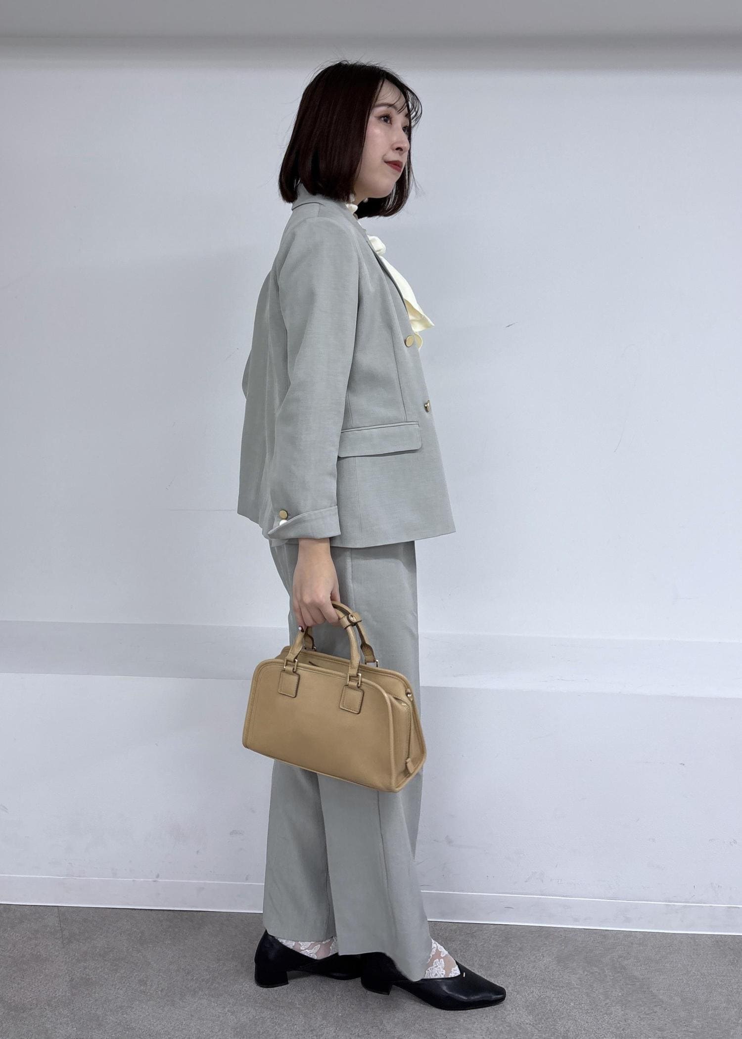 これからの時期にピッタリな春カラーのセットアップコーデ。
