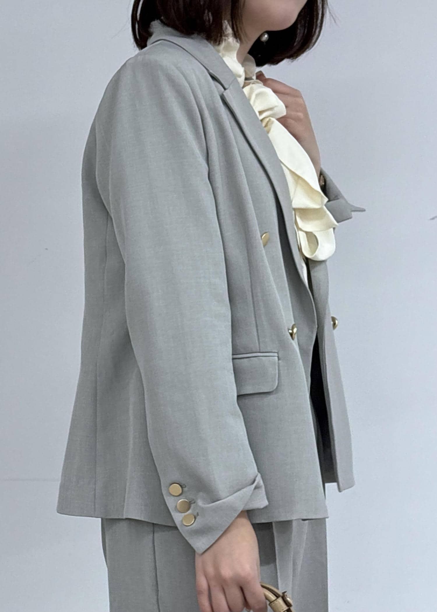 顔周りに華やかさを足したかったので、フリルブラウスを選びました。
