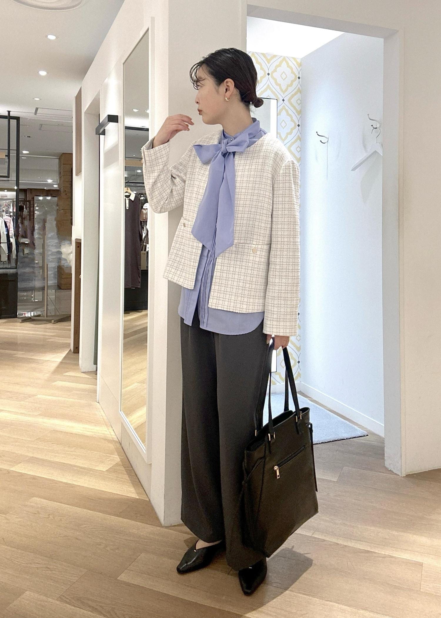 ROPÉ PICNICボウタイリボンシャツ/花粉ガード・防シワブルー / F¥5,995レビューハリのある生地で存在感のあるブラウスです! ボウタイがあるとより華やかな印象になります♪