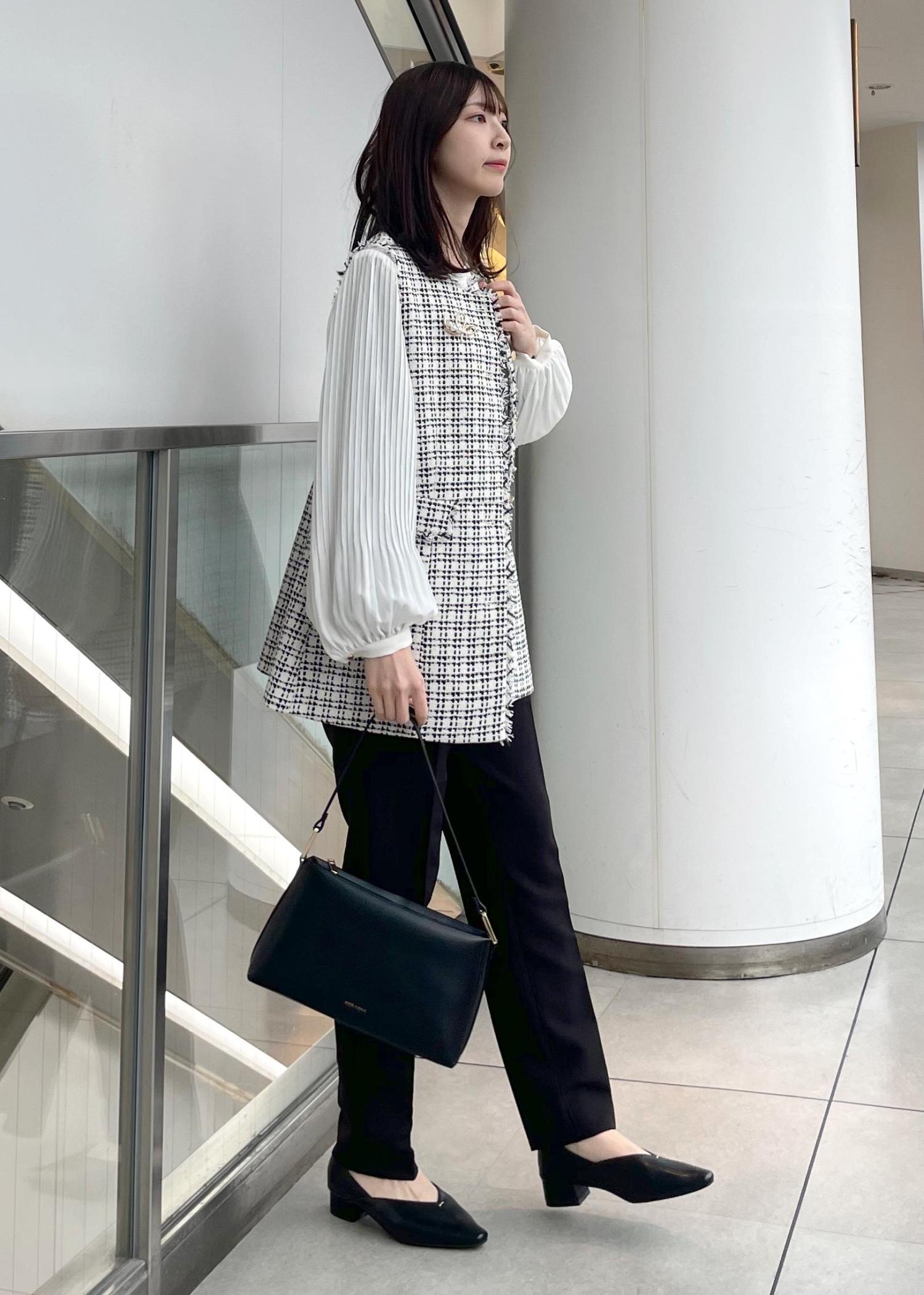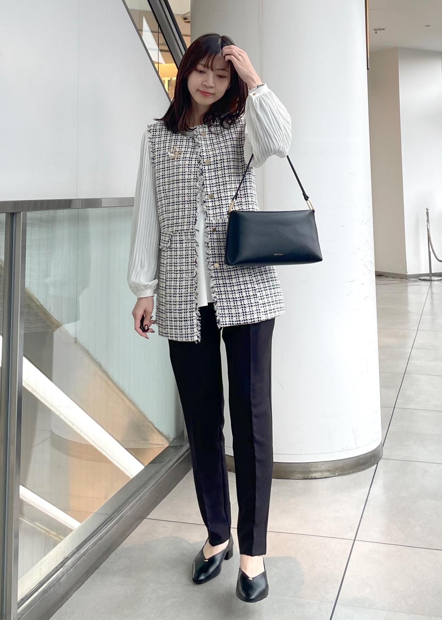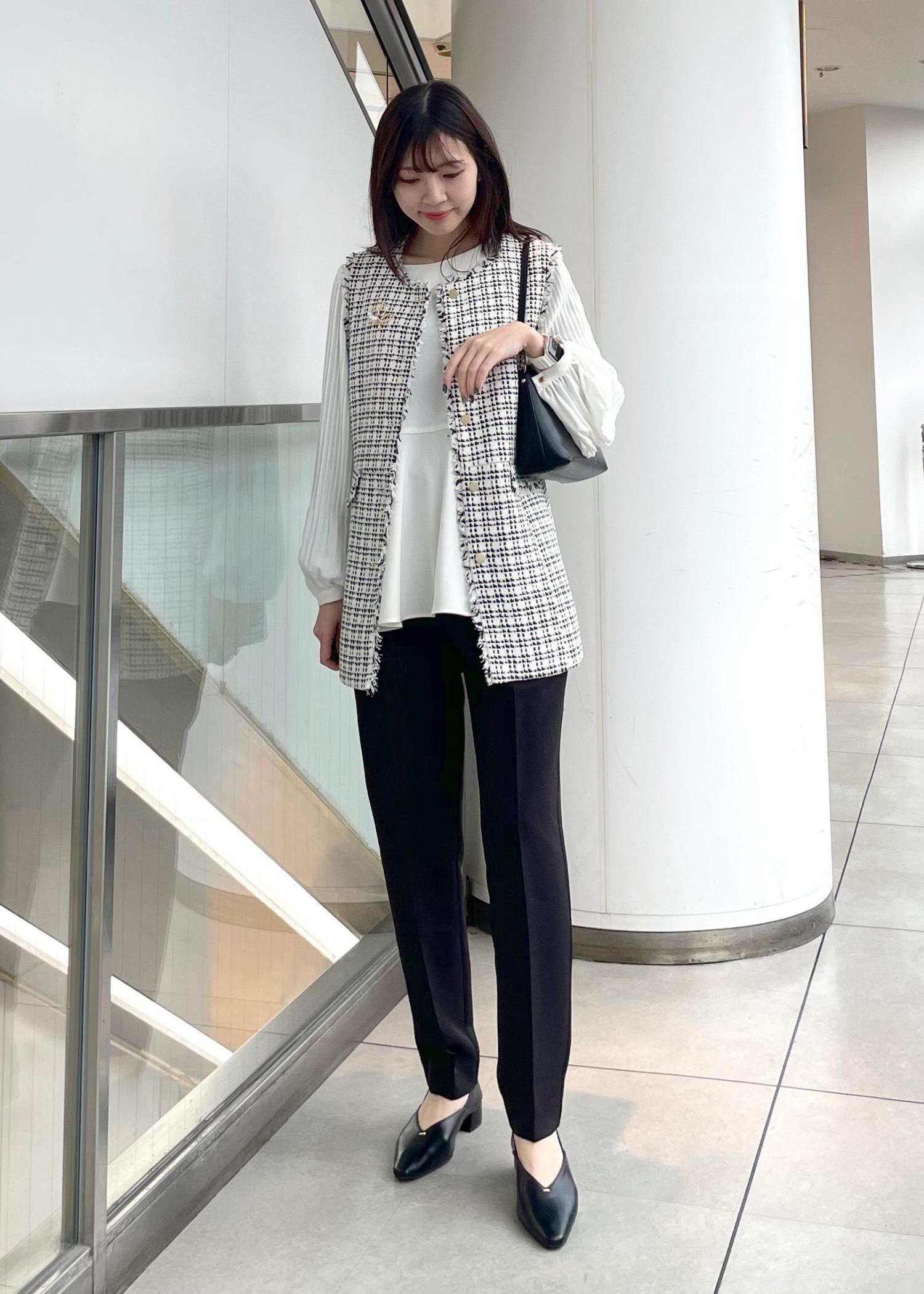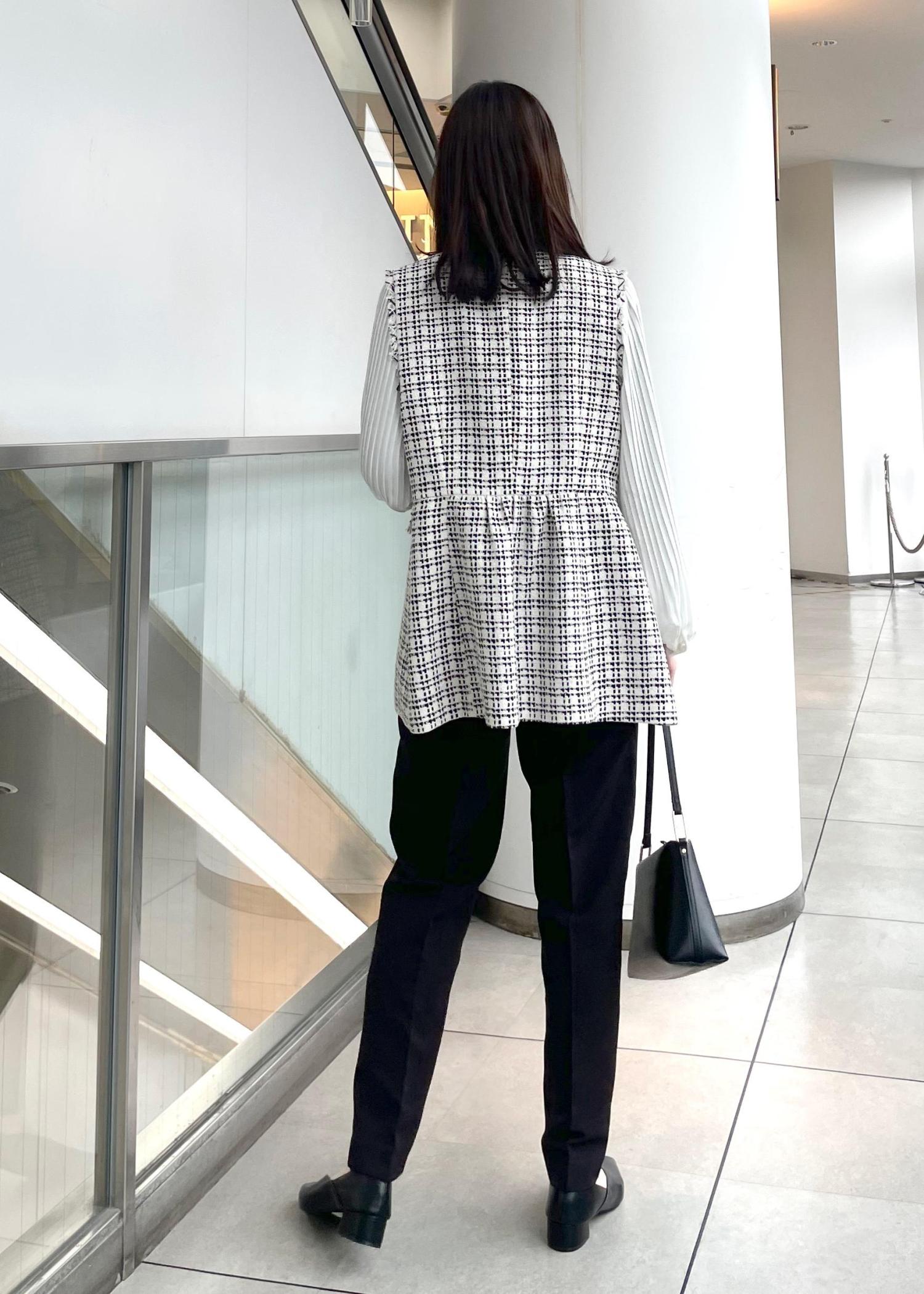 ROPÉ PICNIC【WEB限定カラー】ツイード金ボタンジレベスト/セレモニー対応・リンクコーデブラック系 / F¥8,998レビューおしりがしっかり隠れる丈感ですが、形が後ろペプラムなので細見えします。ツイードですが重くなく軽い着心地。