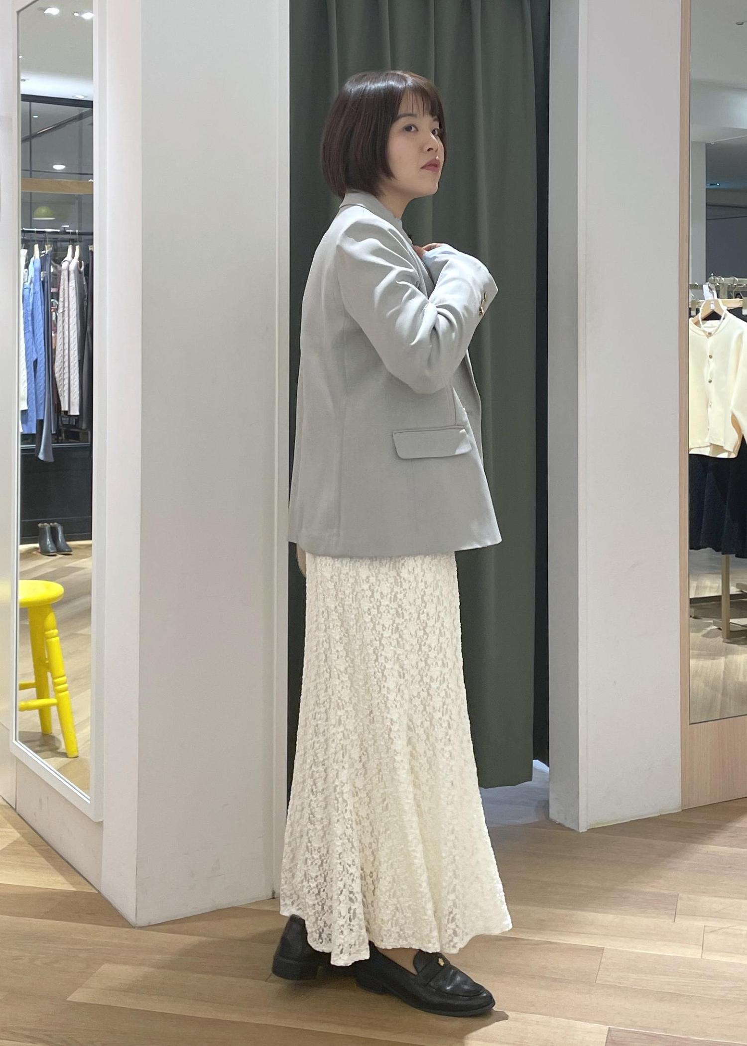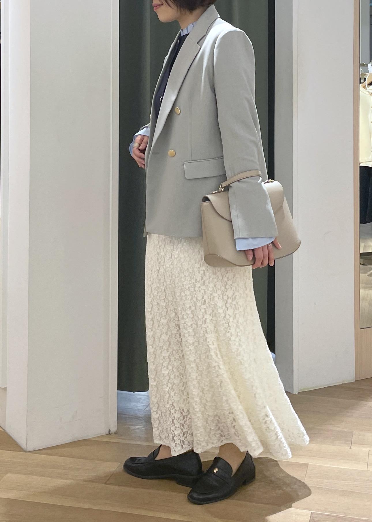 春カラージャケットのレーススカートコーデ