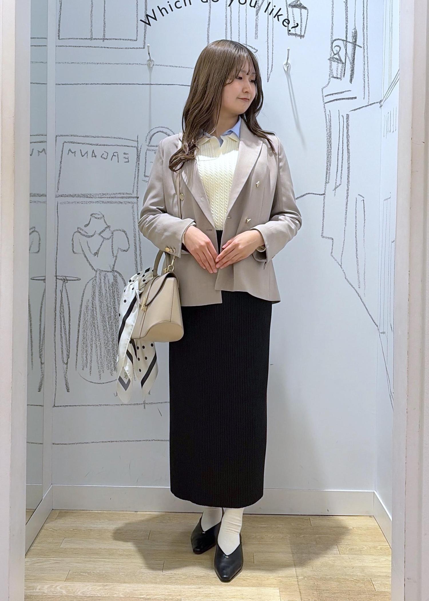 お仕事はもちろん!仕事終わりのディナーやデートなどにもそのまま着替えずにそのままオンオフ使い回しできるアイテムです。女性らしさと上品さを兼ね合わせたコーディネートです。